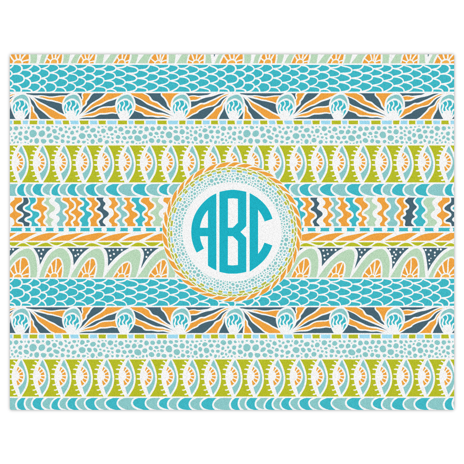 In the center of all the striped, rounded, and scaled mayhem is a white label, the eye of the storm, the perfect place for the personalization of your choice.