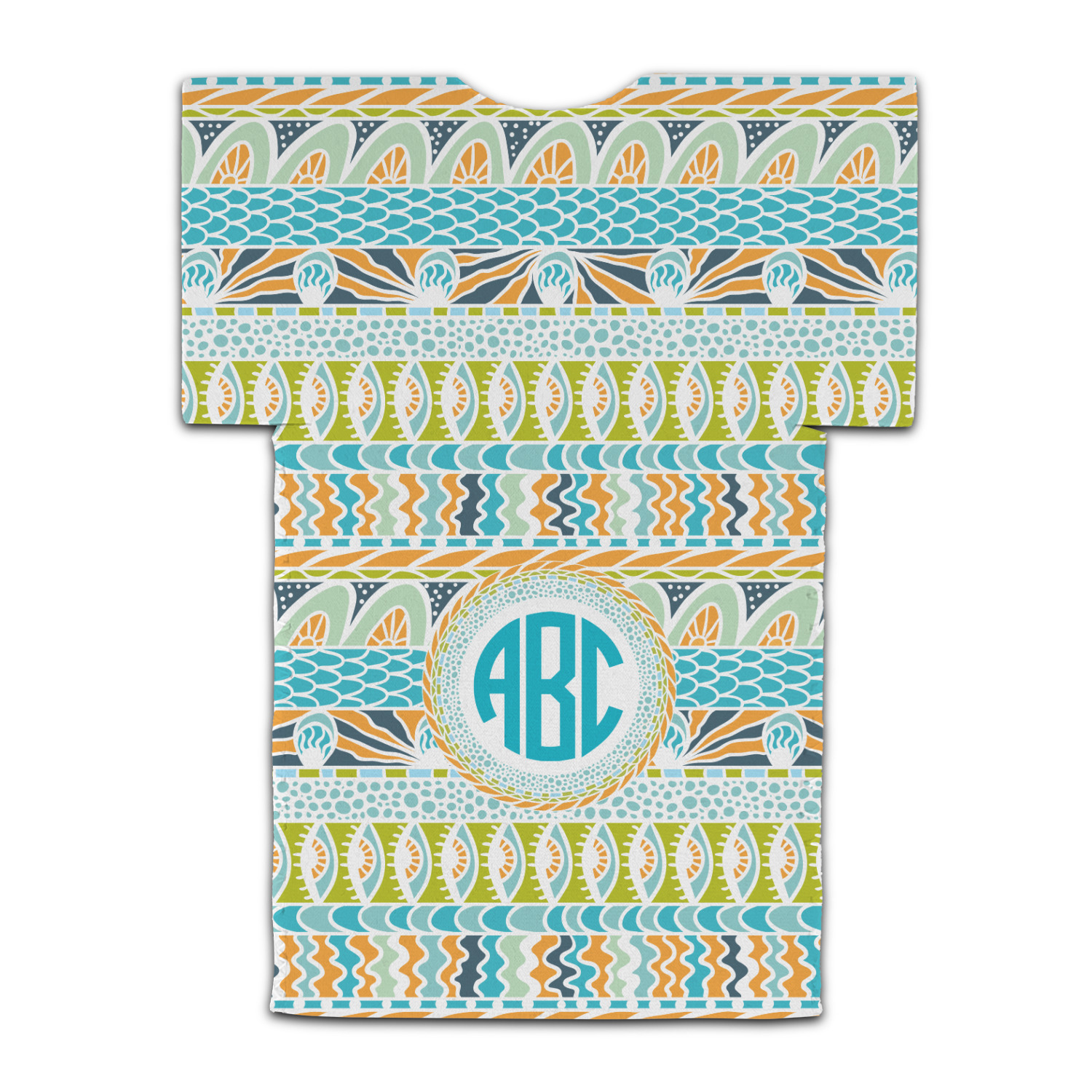 In the center of all the striped, rounded, and scaled mayhem is a white label, the eye of the storm, the perfect place for the personalization of your choice.