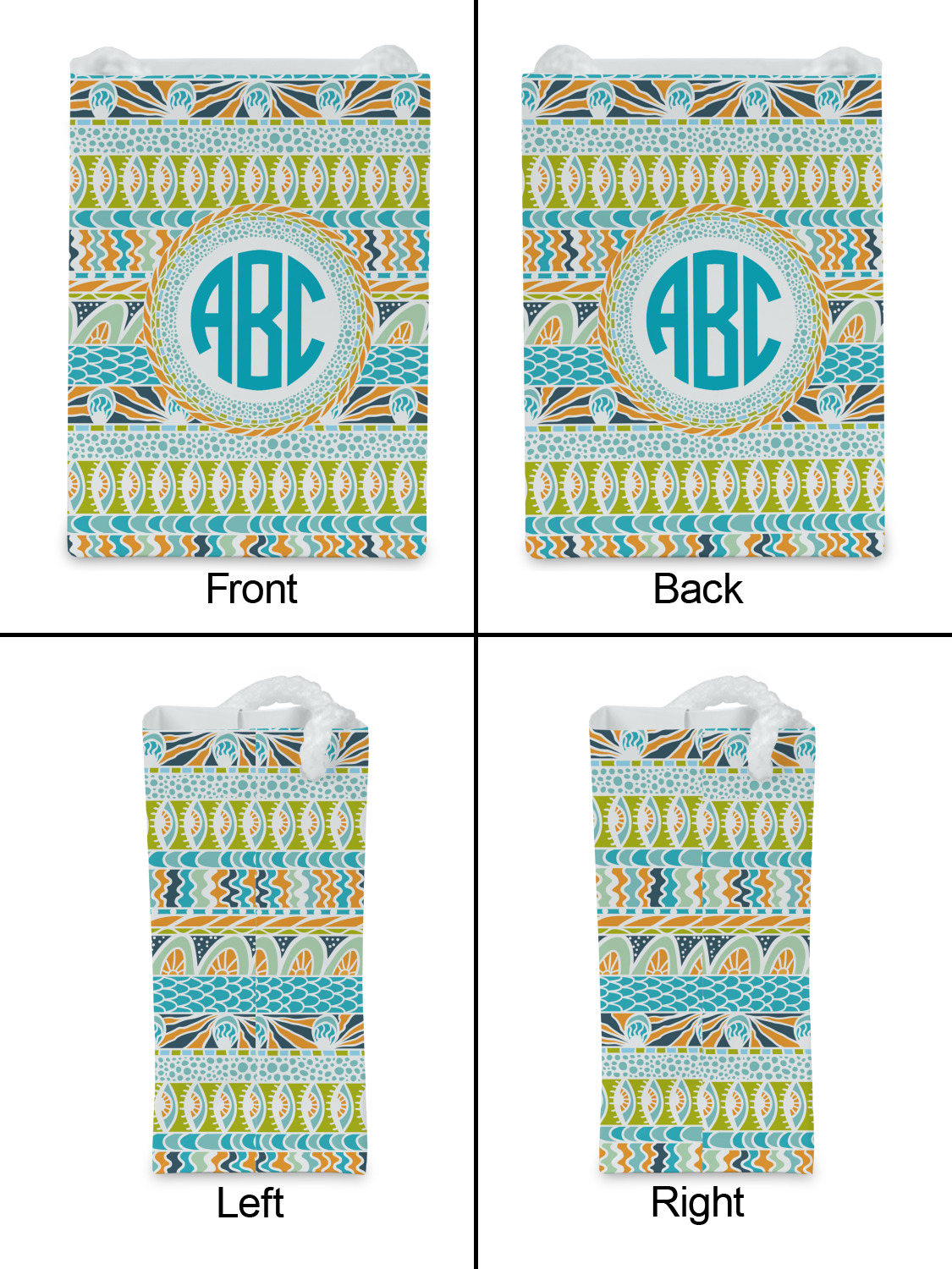 These jewelry gift bags are available in two finishes - matte or gloss. The are digitally printed in full color, then cut down to size, scored & folded. A single handle is attached.