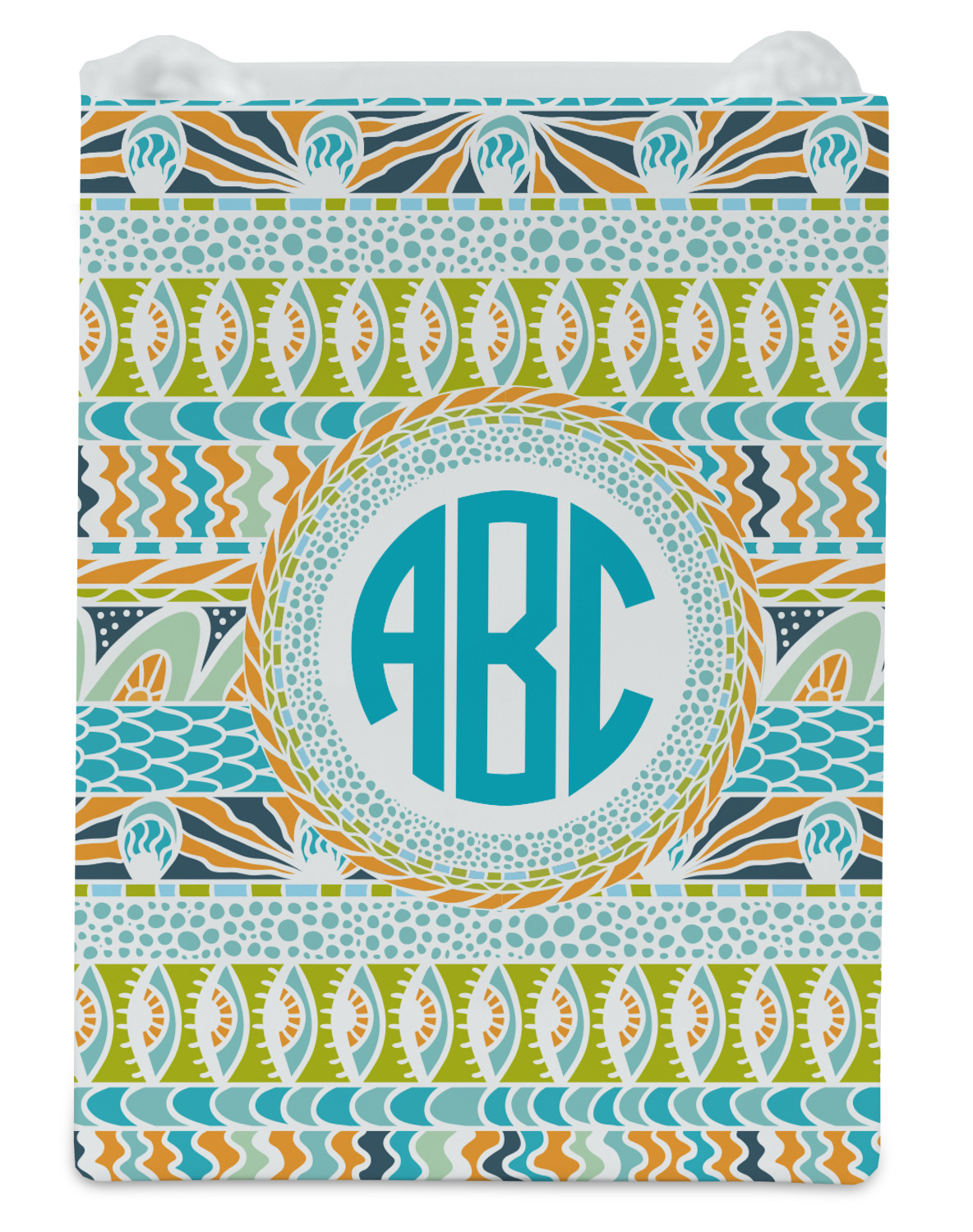 In the center of all the striped, rounded, and scaled mayhem is a white label, the eye of the storm, the perfect place for the personalization of your choice.