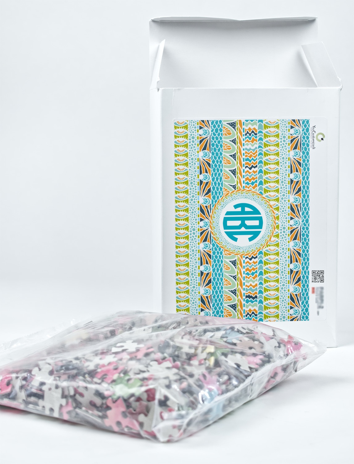 You can also upload your logo or art that you or your kids drew. To create more challenging jigsaw puzzles, you can create a pattern from with your logo or artwork. You can also add other elements such as text or personalization.