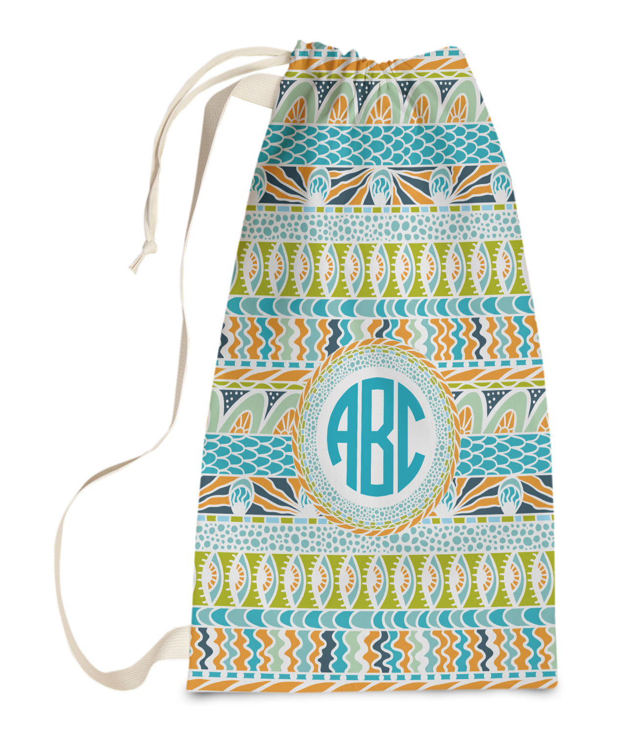 Carry your laundry in style with these customized laundry bags. Available in two sizes, featuring a natural colored woven strap and a cinch cord, these bags hold a lot of clothes or anything else you want to fit in them.
