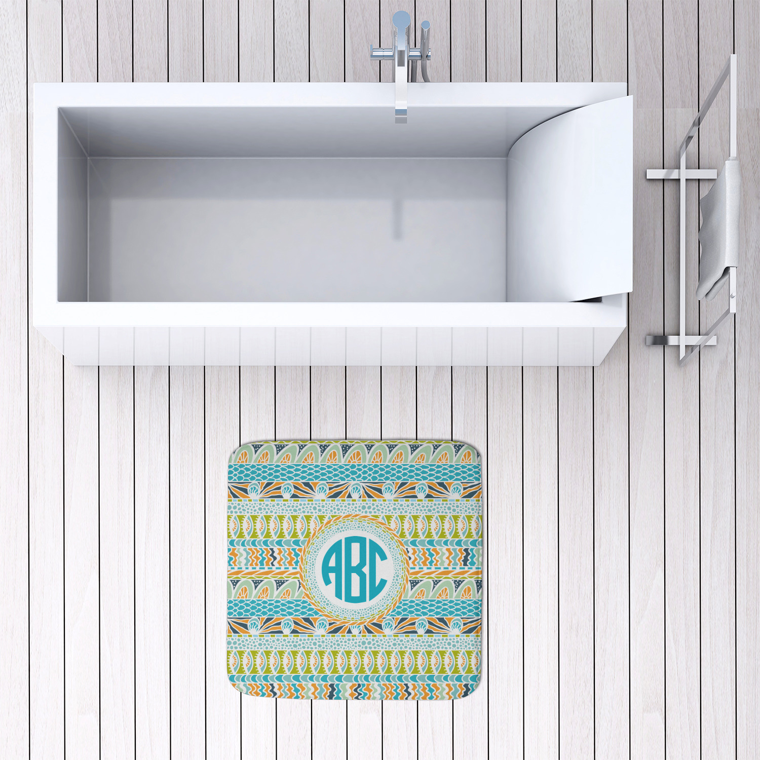We offer this custom bath mat in four different sizes, so that you can choose the proper size for your bathroom and shower space. We suggest measuring the area before so that you can make an informed purchase. The four sizes are as follows: 24 by 17 inches, 34 by 21 inches, 48 by 36 inches, and 48 by 48 inches.