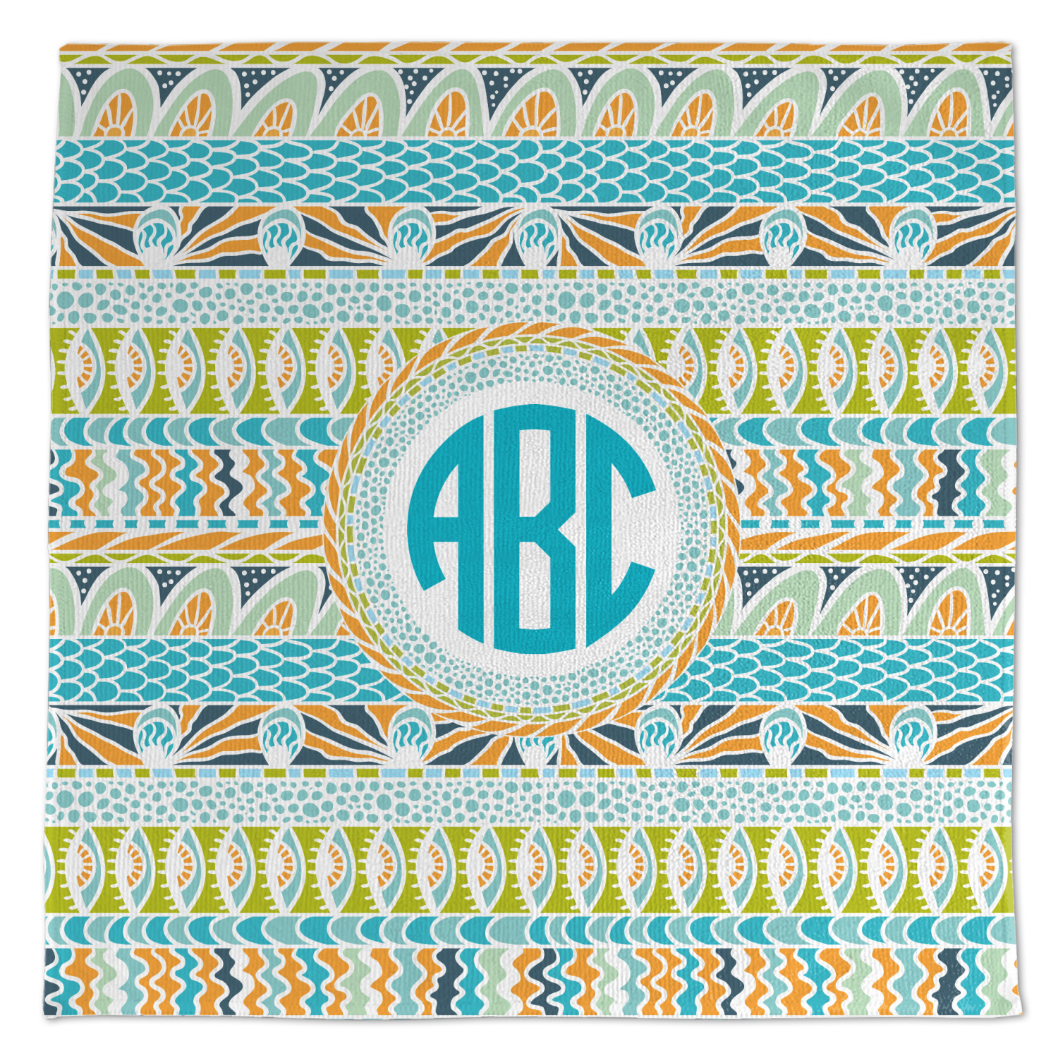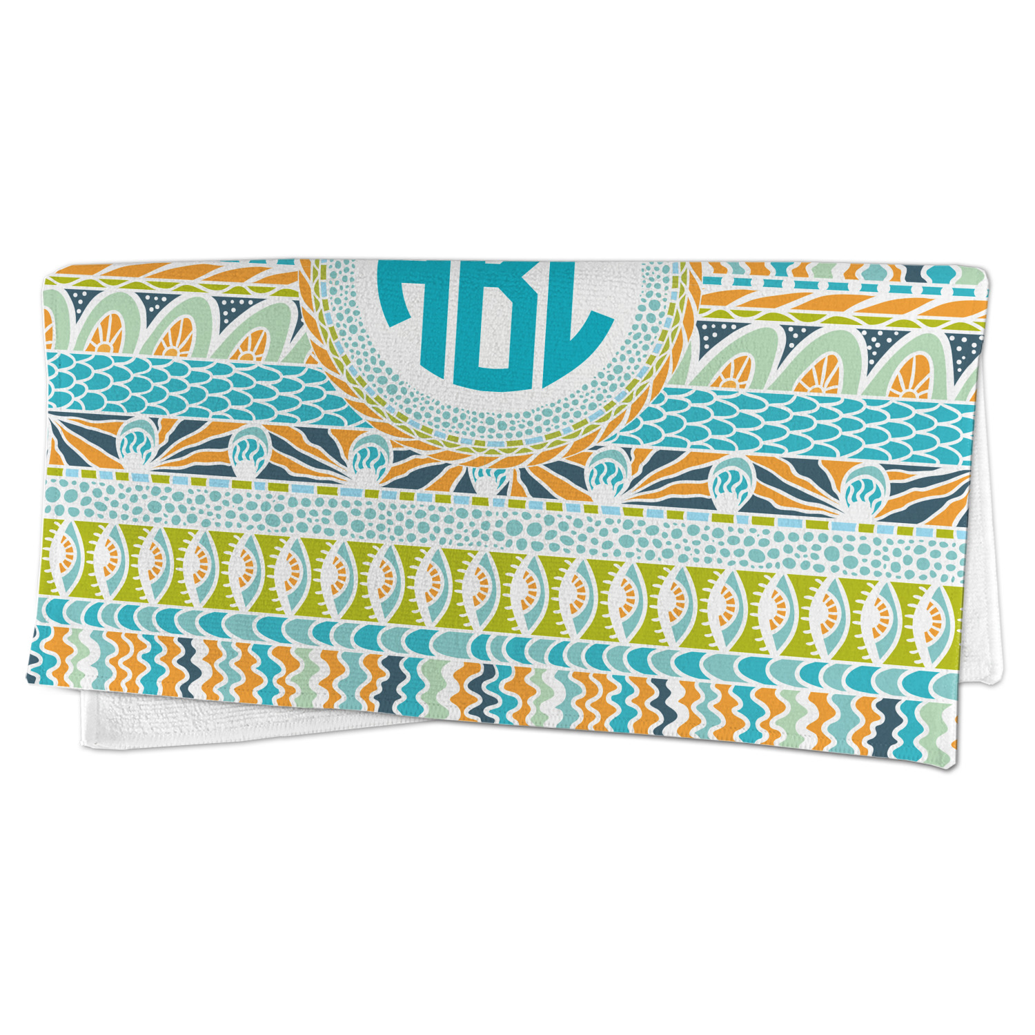 This design takes abstract to the next level by adding fun colors of teal, lime green, and orange to the traditional black and white.