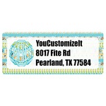 In the center of all the striped, rounded, and scaled mayhem is a white label, the eye of the storm, the perfect place for the personalization of your choice.