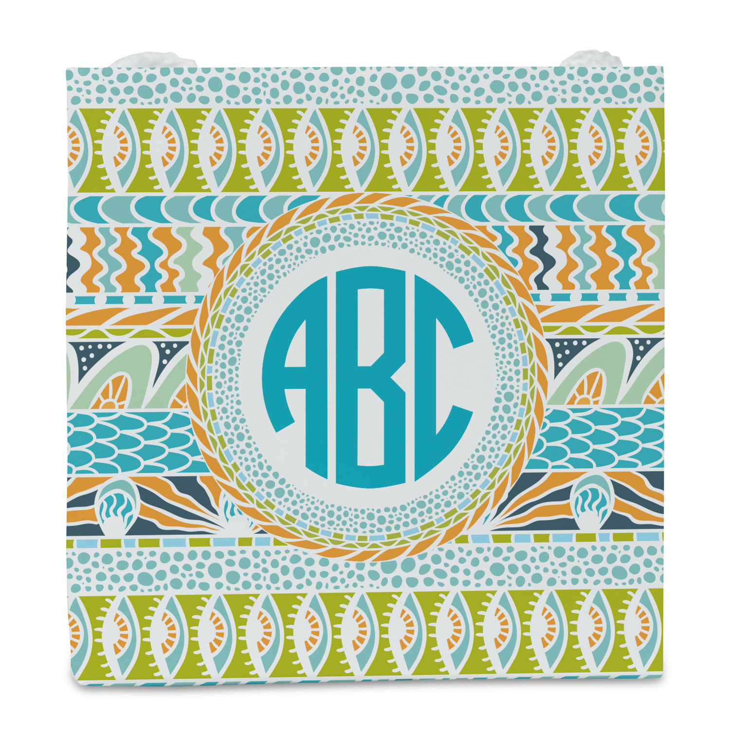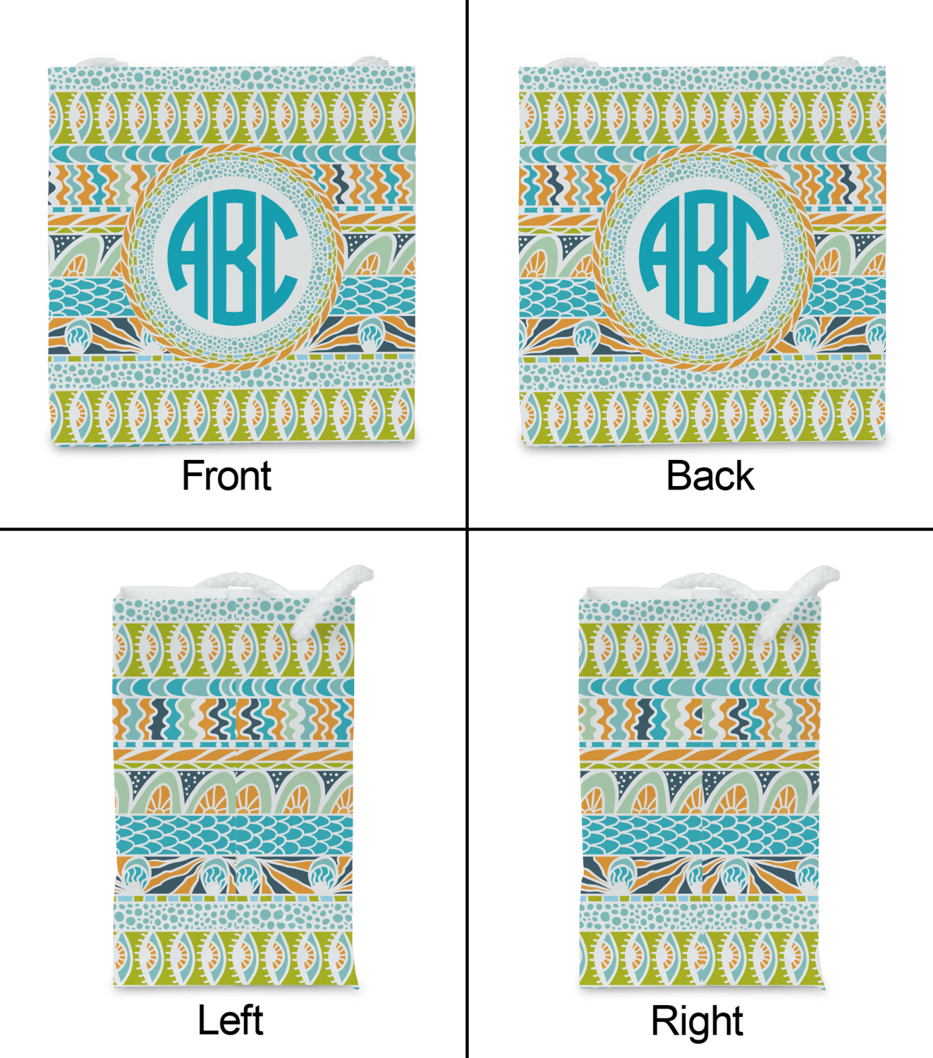 In the center of all the striped, rounded, and scaled mayhem is a white label, the eye of the storm, the perfect place for the personalization of your choice.