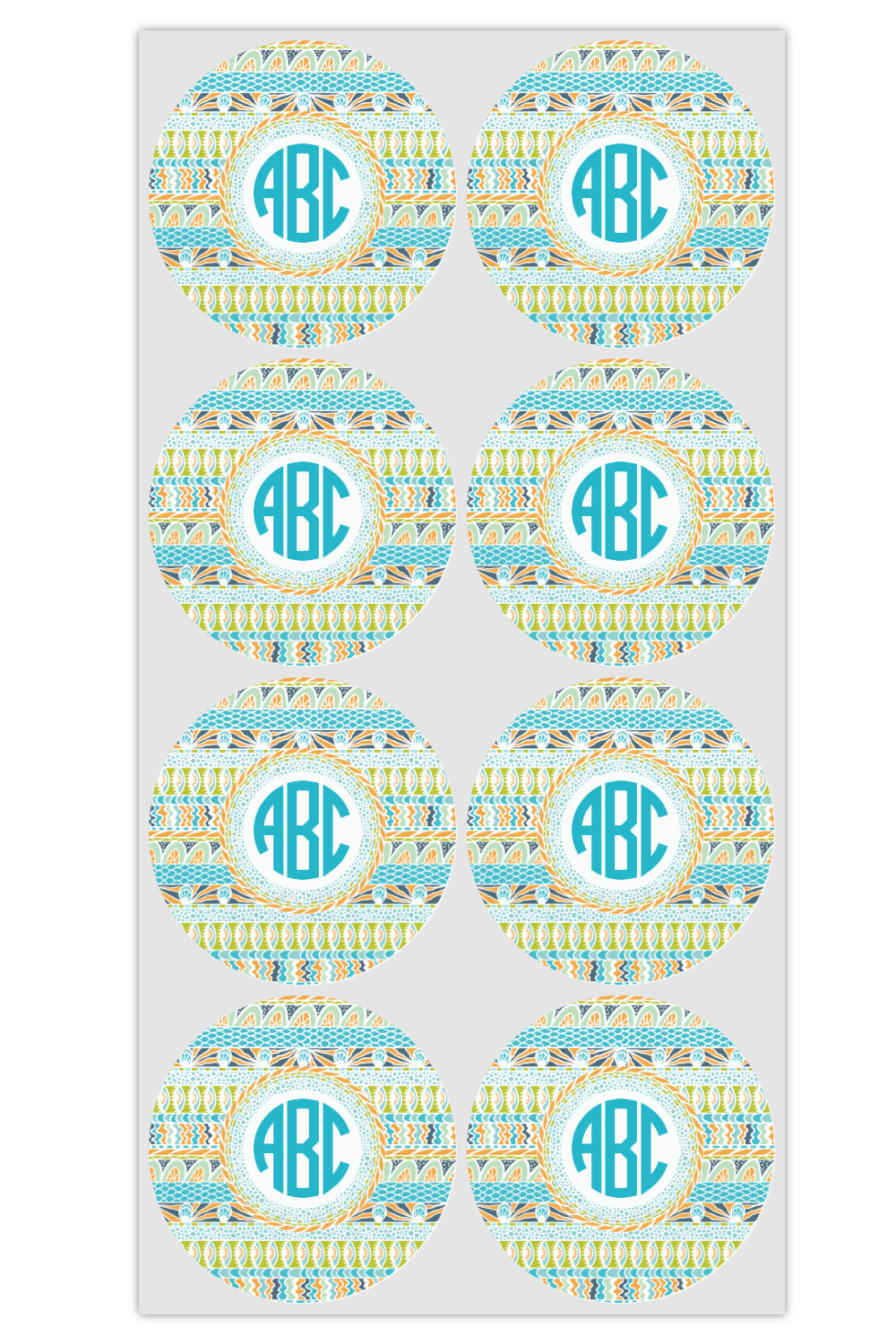 In the center of all the striped, rounded, and scaled mayhem is a white label, the eye of the storm, the perfect place for the personalization of your choice.