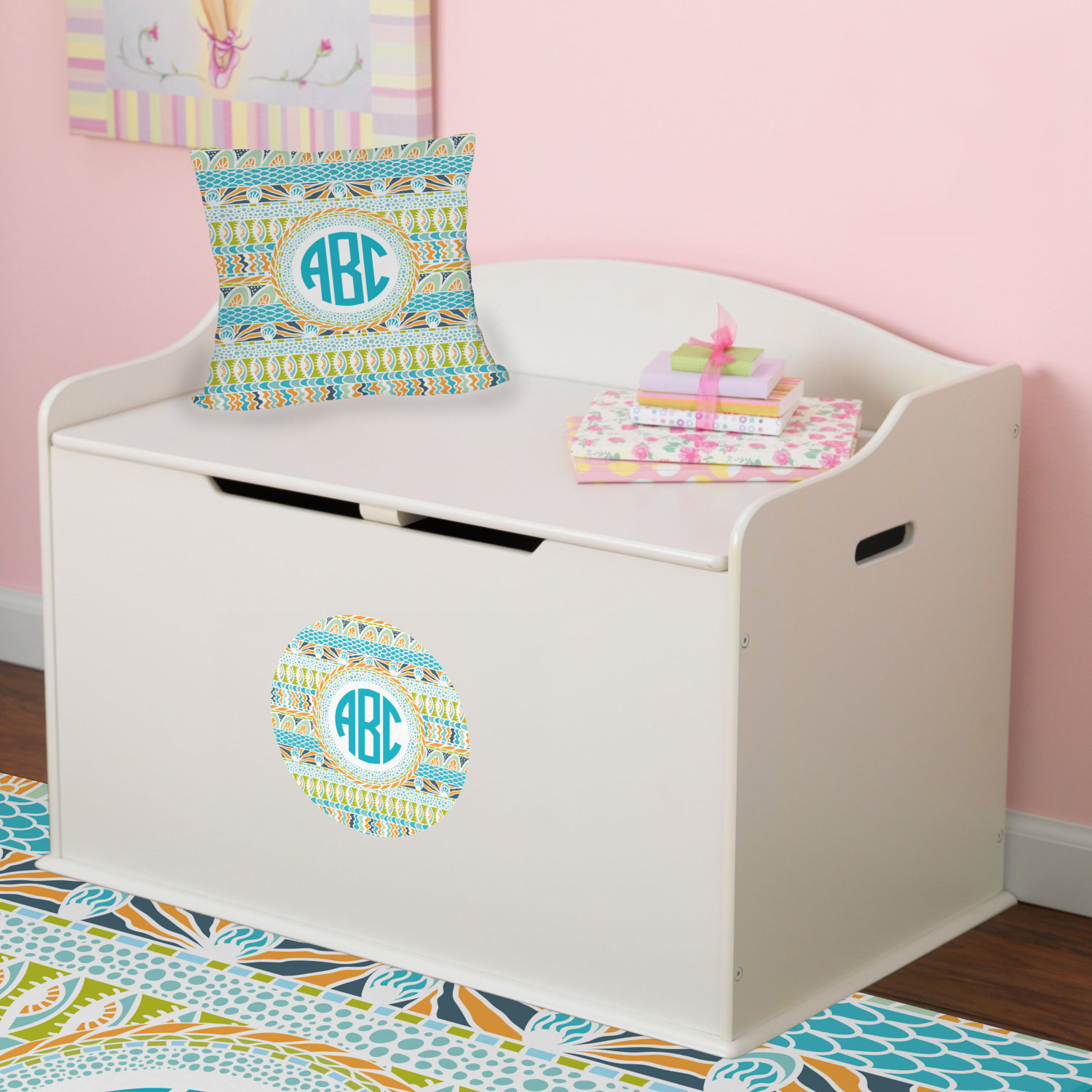 In the center of all the striped, rounded, and scaled mayhem is a white label, the eye of the storm, the perfect place for the personalization of your choice.