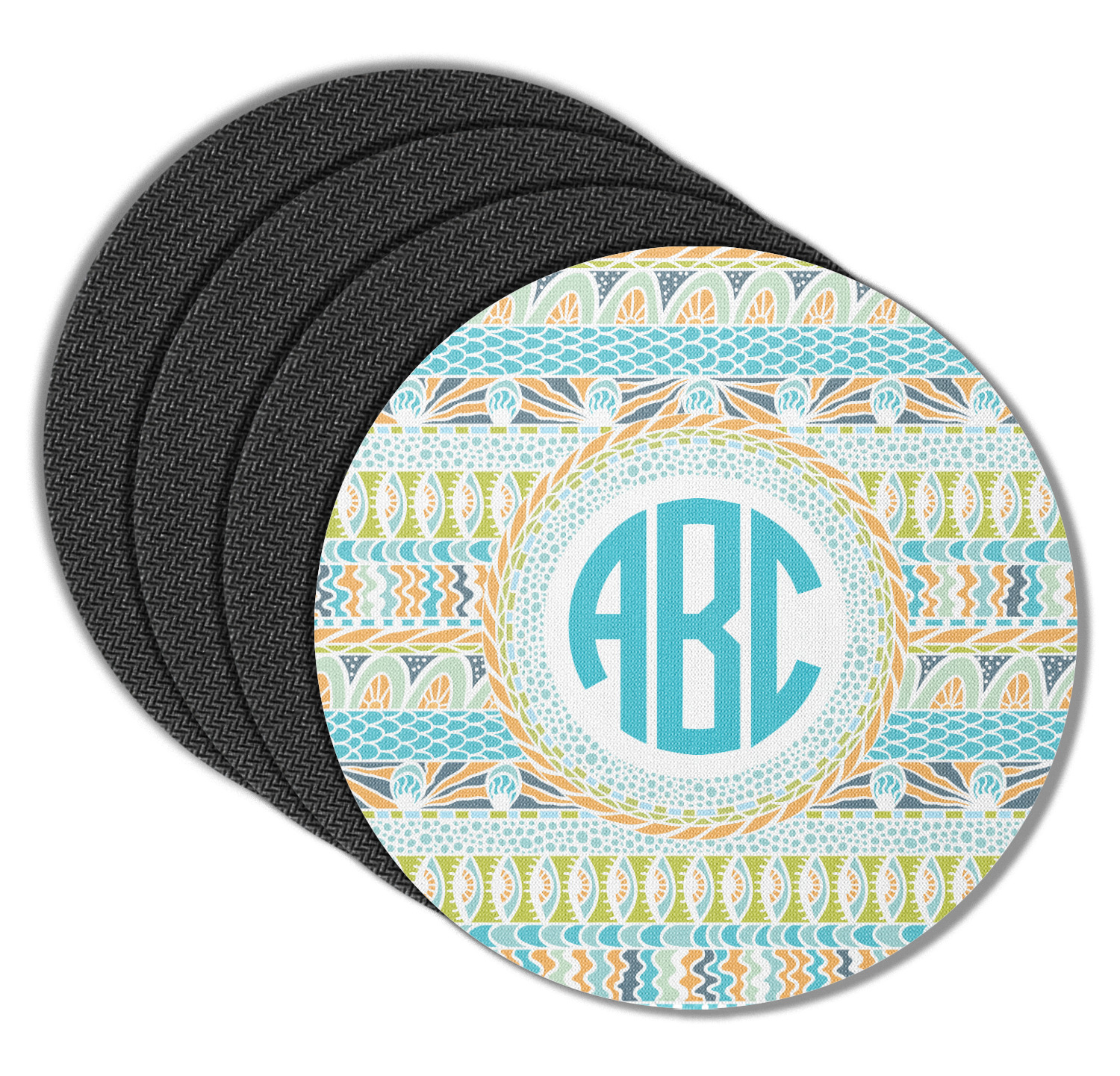 These drink coasters have a smooth, polyester top and a textured, rubber backing on its bottom. The non-slip rubber backing underneath works to keep any spills at bay. At 4 by 4 by 0.25 inches thick, these custom coasters are a suitable size for most drinkware. Your personalization is displayed atop the face of the cup coaster. We sell these rubber coasters in two different shapes: square and round. You can buy each shape as singulars or as a set of 4.