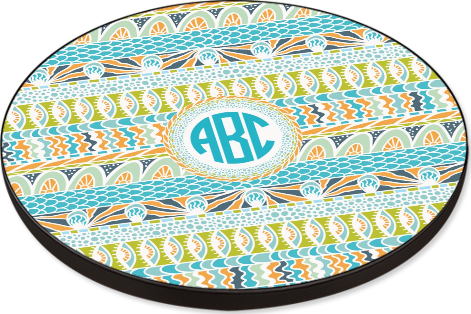 In the center of all the striped, rounded, and scaled mayhem is a white label, the eye of the storm, the perfect place for the personalization of your choice.