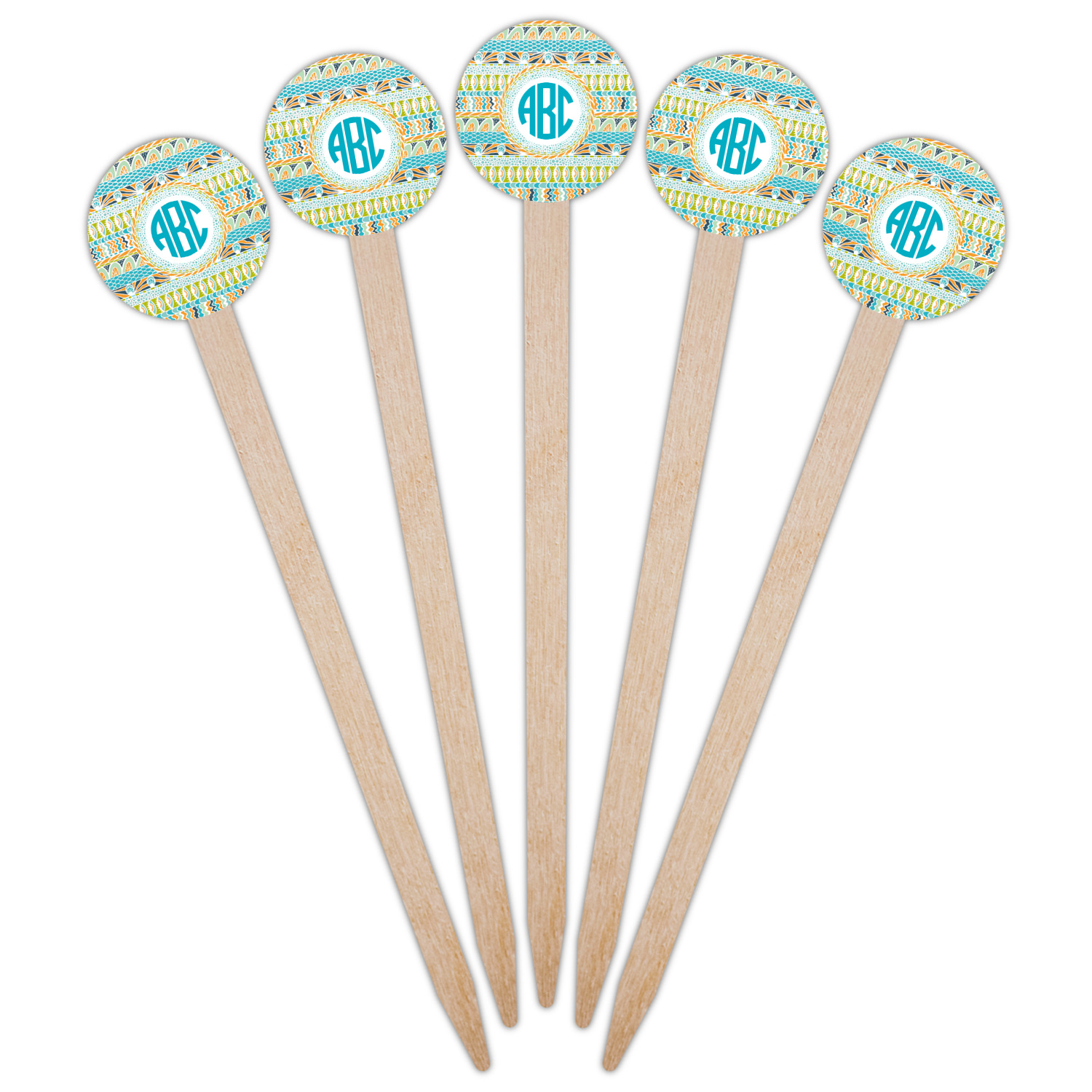 In the center of all the striped, rounded, and scaled mayhem is a white label, the eye of the storm, the perfect place for the personalization of your choice.