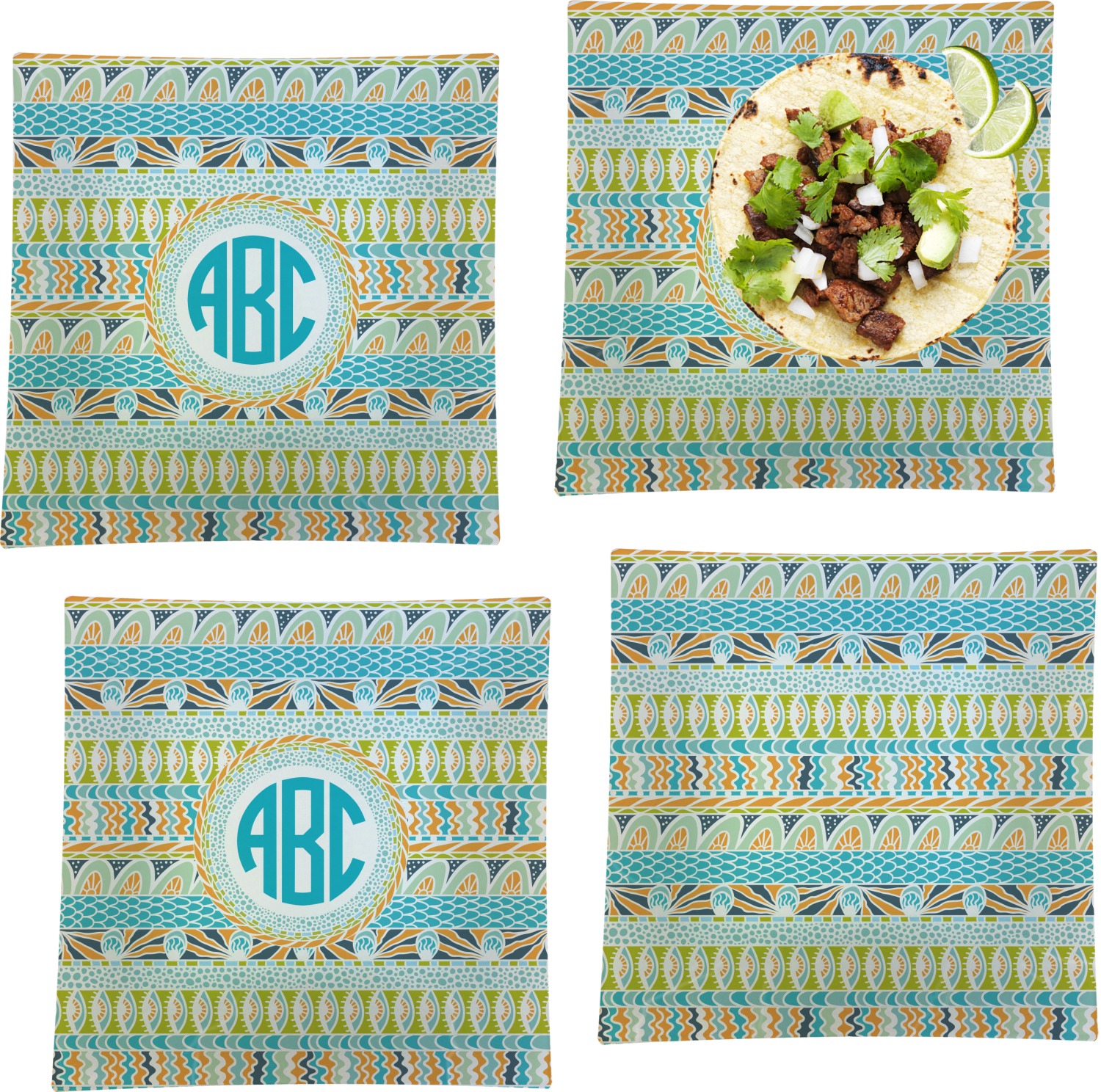 This design takes abstract to the next level by adding fun colors of teal, lime green, and orange to the traditional black and white.