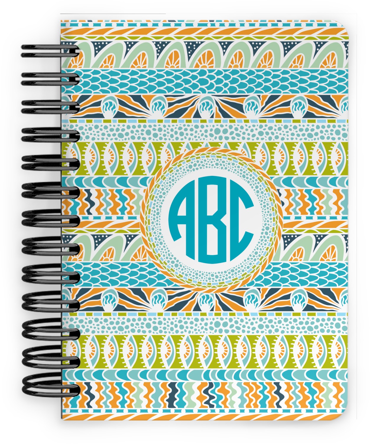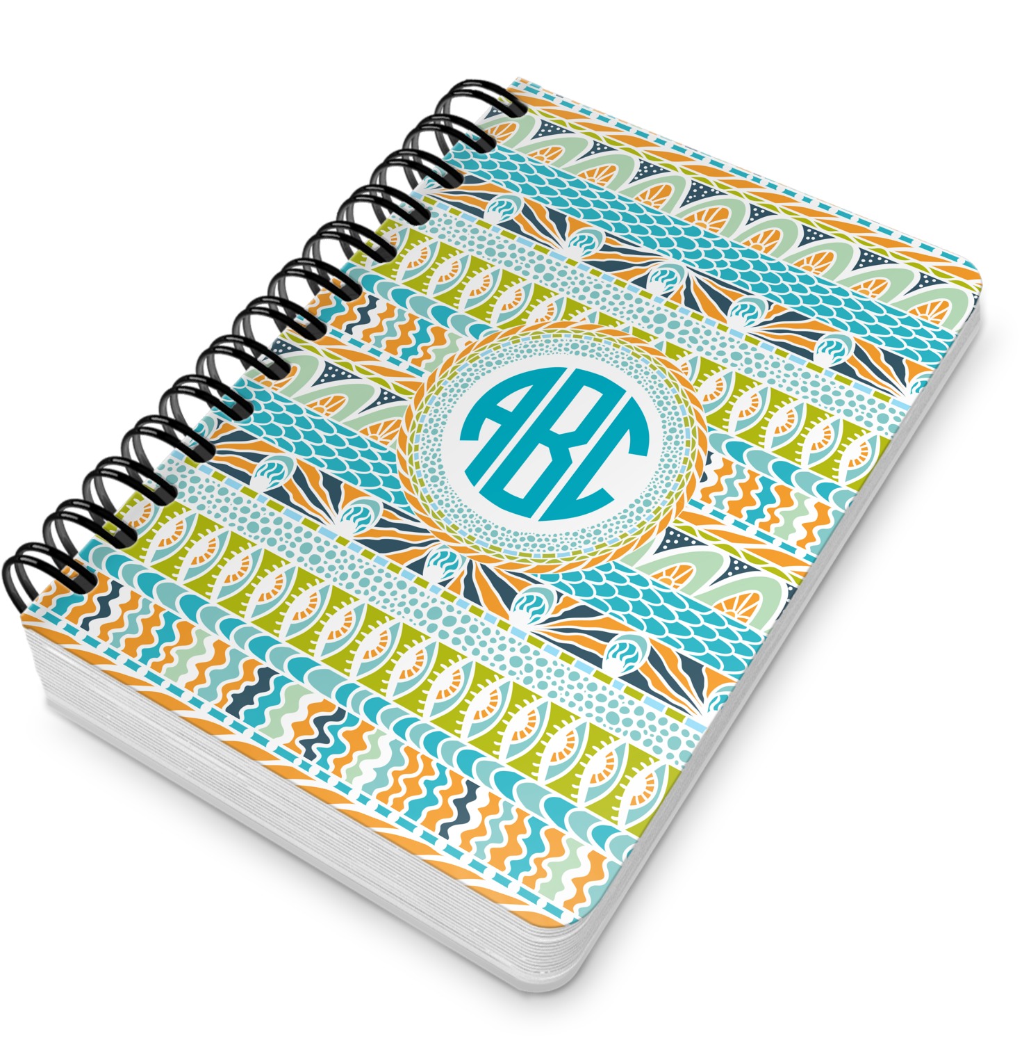 This spiral notebook includes 75 sheets of thick, ruled paper. The front and back of this custom notebook is made of a robust, laminate, plastic covering. We print your personalization on these two panels, underneath a glossy finish, which emphasizes the colors of your design. The two panels and the sheets of paper are held together by a sturdy, black coil. The paper within your bound notebook is perforated for easy, clean tearing.