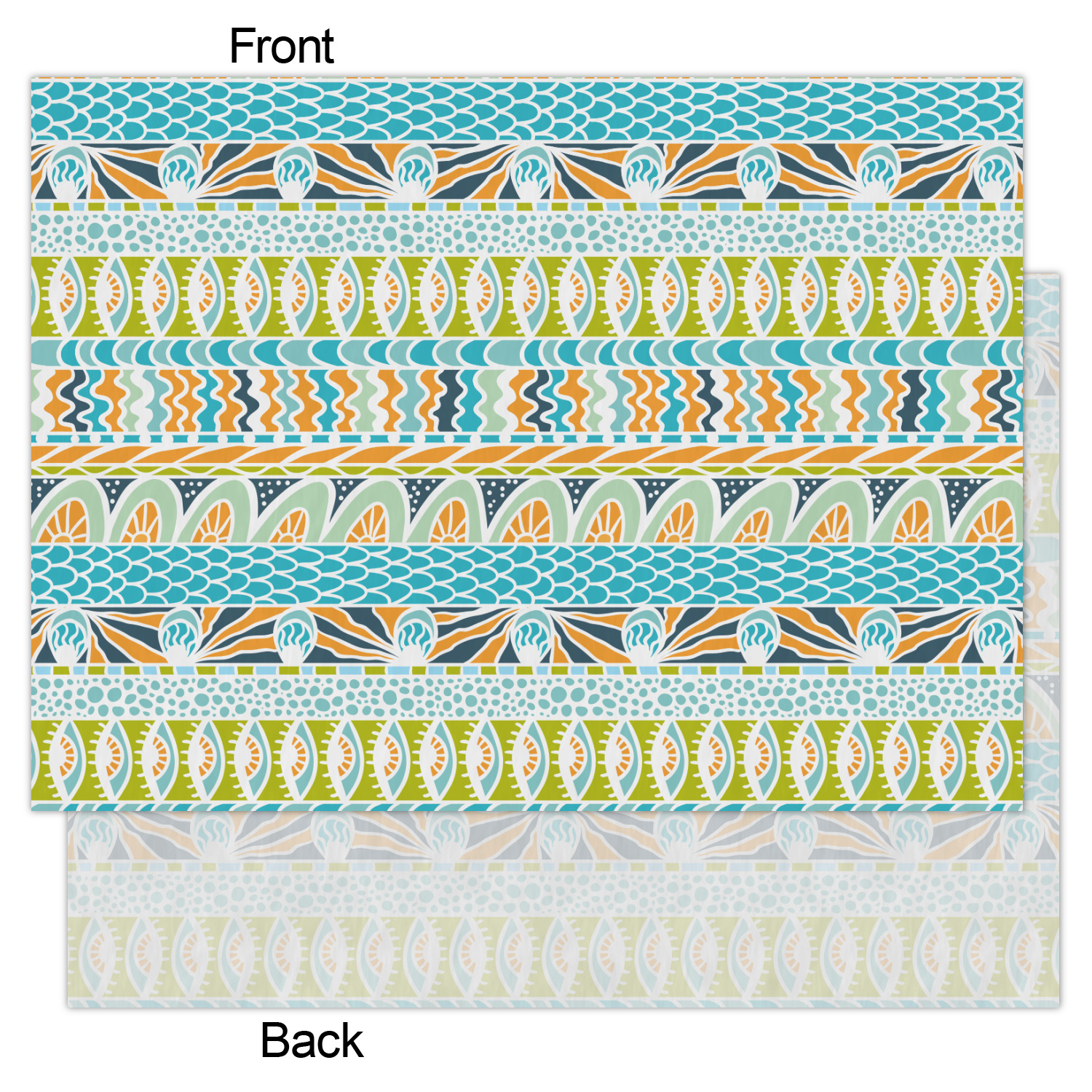 In the center of all the striped, rounded, and scaled mayhem is a white label, the eye of the storm, the perfect place for the personalization of your choice.