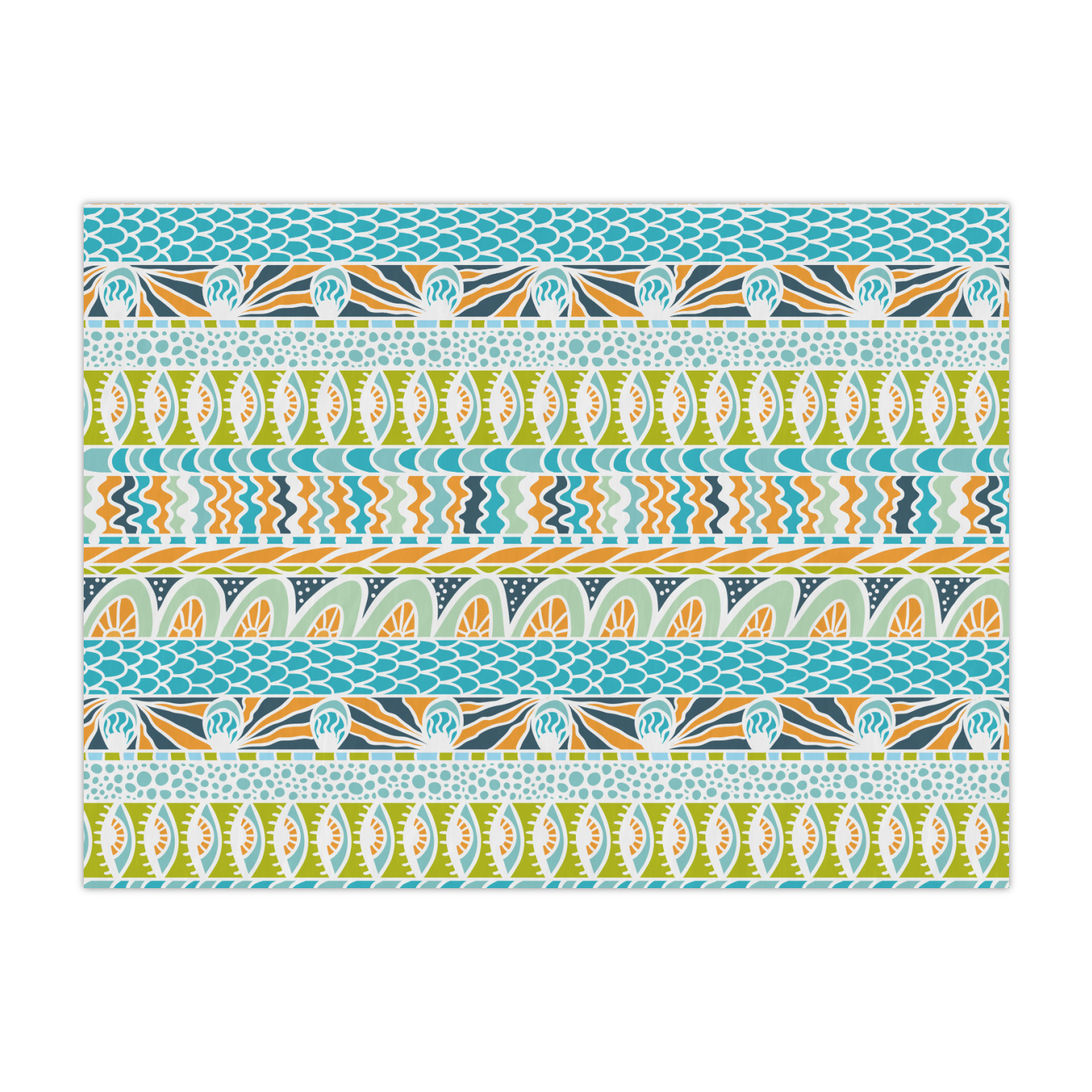 This design takes abstract to the next level by adding fun colors of teal, lime green, and orange to the traditional black and white.