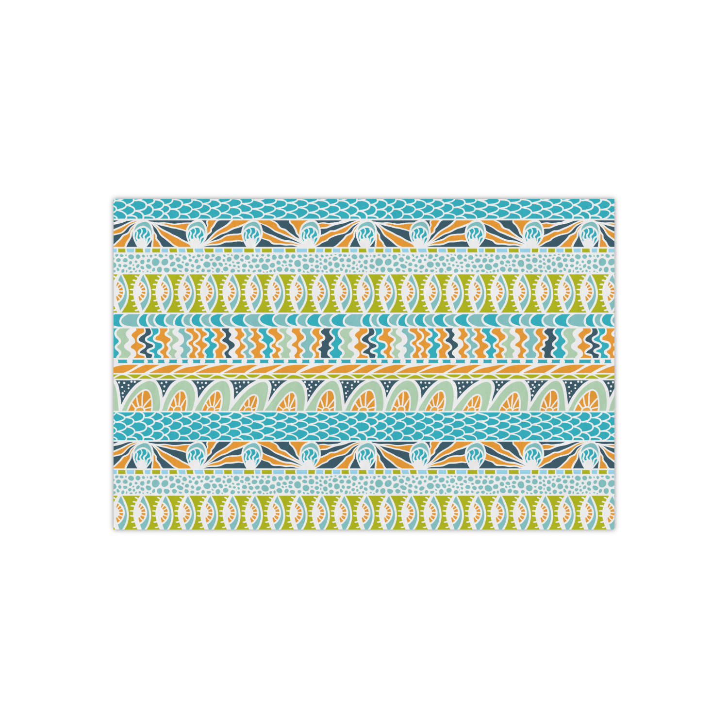 This design takes abstract to the next level by adding fun colors of teal, lime green, and orange to the traditional black and white.