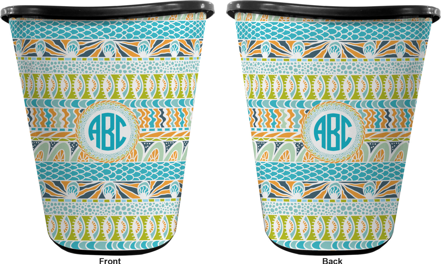 You can choose to purchase these decorative wastebaskets in either a white or a black color that will show on the base and the upper rim. Your customization is printed on a high-gloss, fine-quality vinyl adhesive, and you can choose to either have this adhesive applied to one side only or to both sides. As such, this plastic wastebasket can be single-sided or double-sided, depending on your creative vision. Your customization is printed using durable inks, making the design waterproof and resistant to fading over time.
