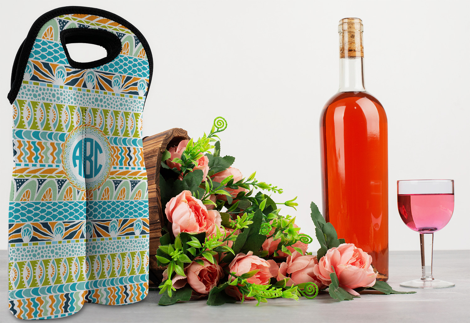 These tote bags are insulated to keep the bottles cold and have a stitched separation down the middle and double handles to keep the two bottles safe and secure during travels.