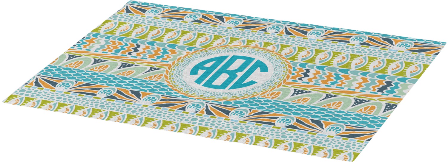 Each of our table mats are a poly twill material with woven burlap detailing. This creates a soft, quality placemat for us to fully print your personalized design across. The woven twill also adds a wrinkle-free surface to set your table! Each customizable placemat is a rectangle shape measuring at approximately 13 x 18 and printed here in the USA.