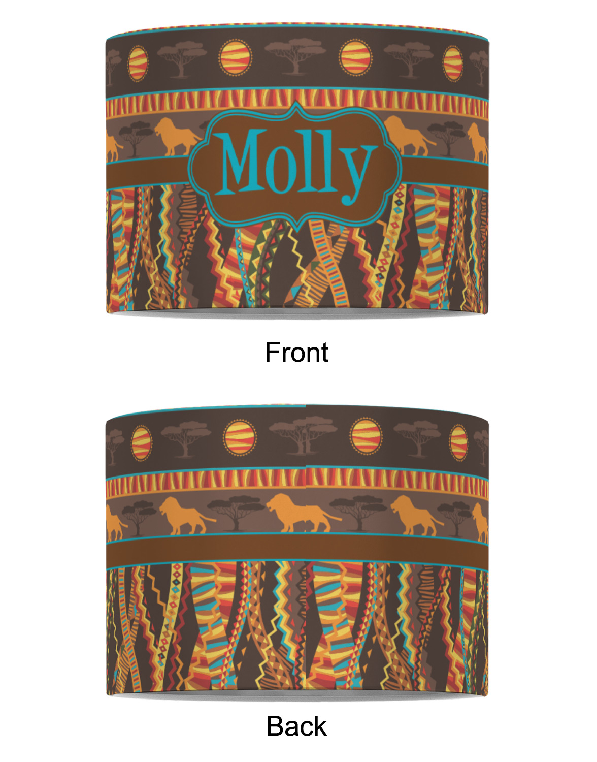 Traditional meets trendy in this fun, tribal design. The African Lions & Elephants design depicts the kings of the African Safari in gorgeous warm colors and teal highlights.