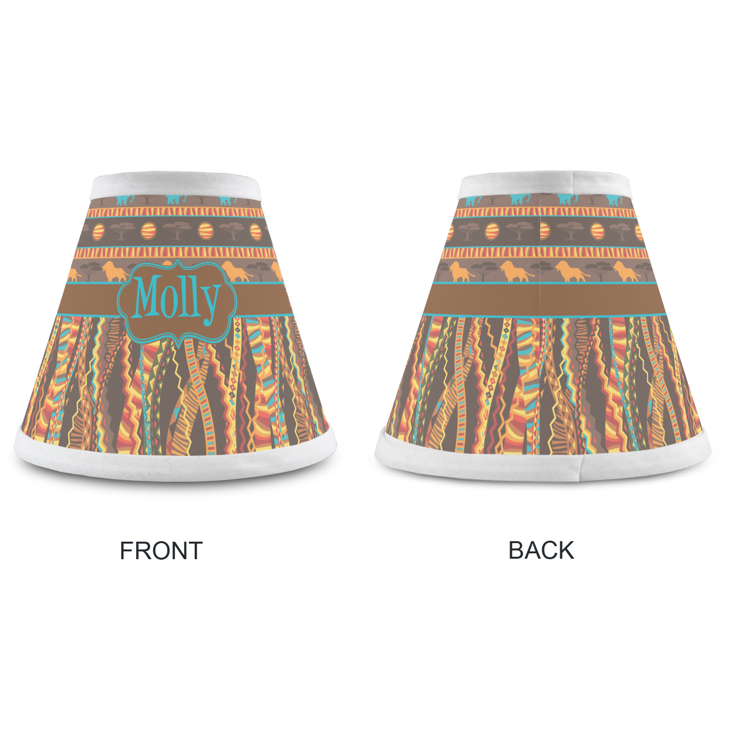 Traditional meets trendy in this fun, tribal design. The African Lions & Elephants design depicts the kings of the African Safari in gorgeous warm colors and teal highlights.
