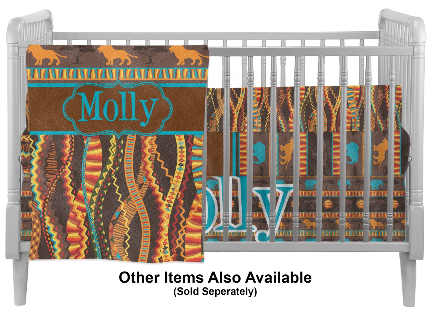 Traditional meets trendy in this fun, tribal design. The African Lions & Elephants design depicts the kings of the African Safari in gorgeous warm colors and teal highlights.
