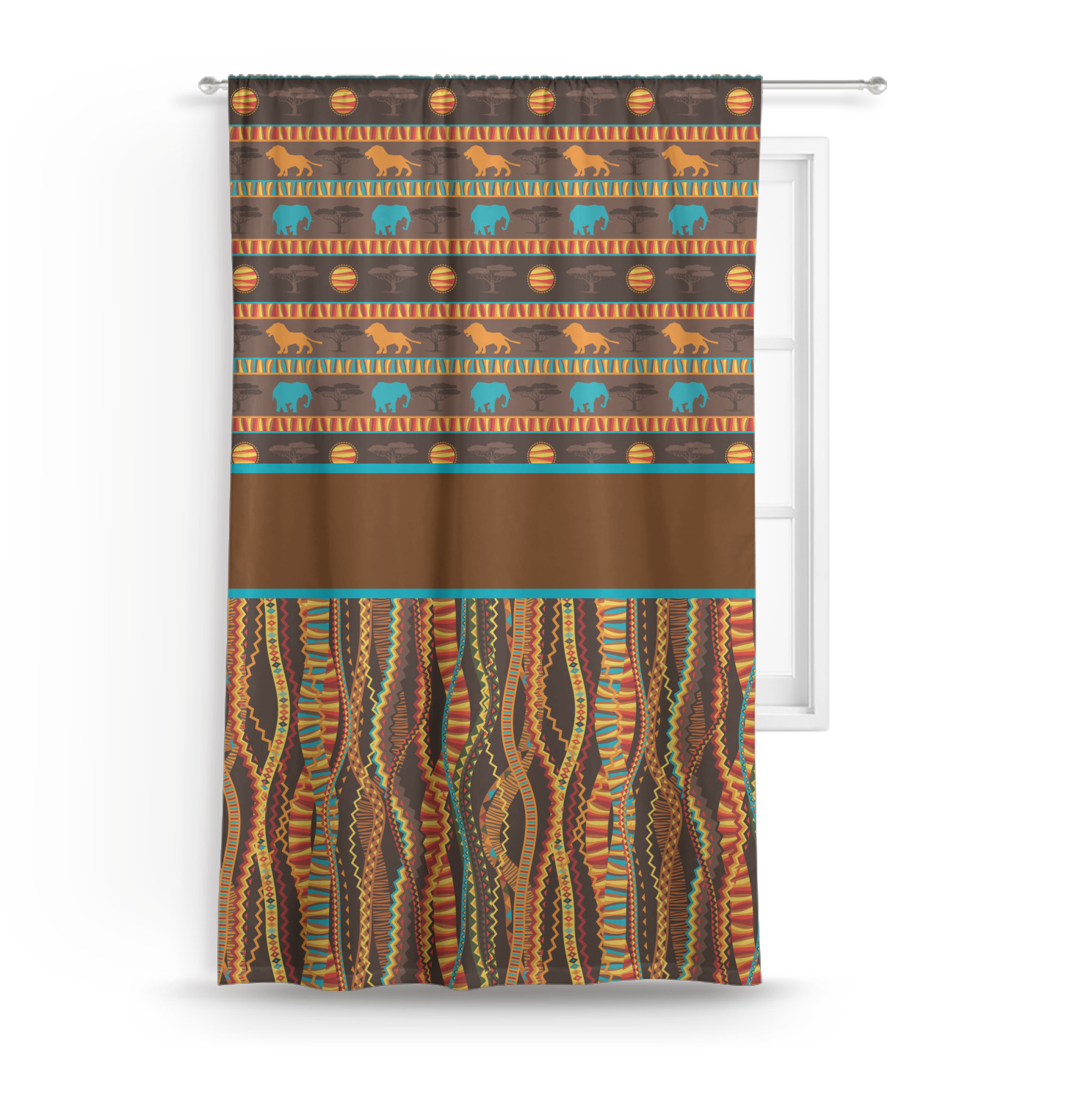 Traditional meets trendy in this fun, tribal design. The African Lions & Elephants design depicts the kings of the African Safari in gorgeous warm colors and teal highlights.
