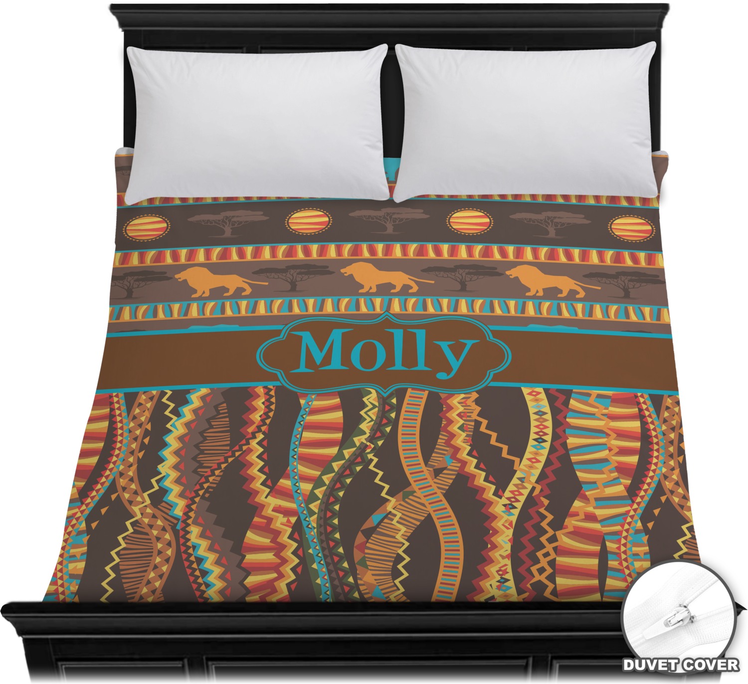 Traditional meets trendy in this fun, tribal design. The African Lions & Elephants design depicts the kings of the African Safari in gorgeous warm colors and teal highlights.