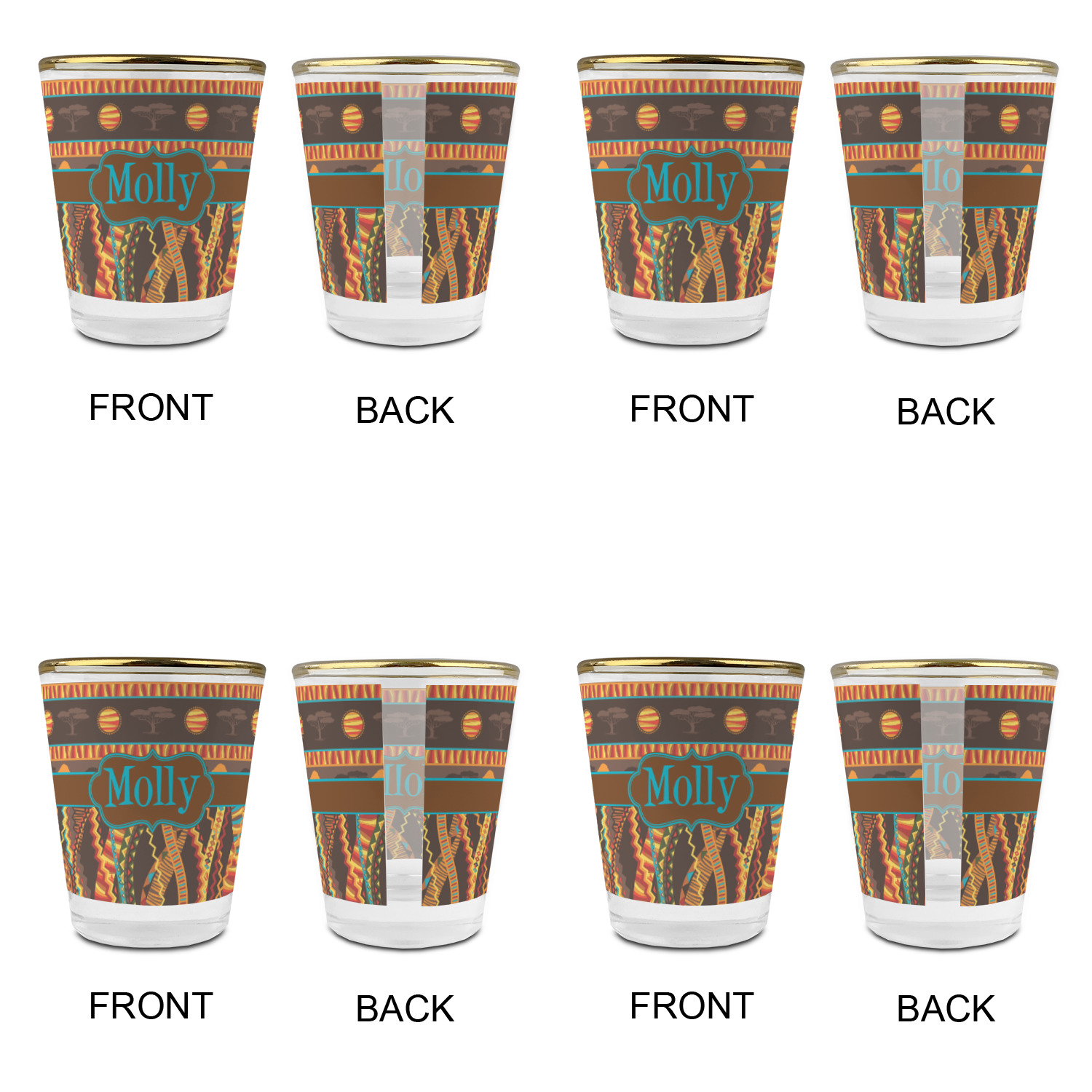 Made with frosted glass, these shot glasses are printed in full color with the design of your choice. They are a standard 1.5oz shot glass and are 2.4" tall. The print is wrapped around the shot glass in a full wrap and boldly displays your customization.