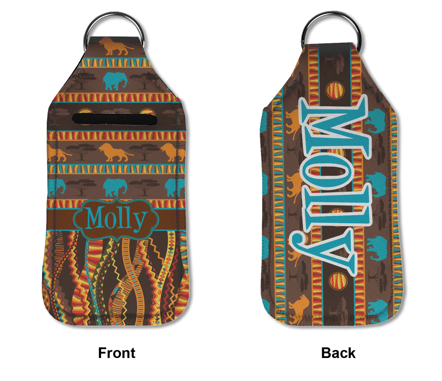 Each hand sanitizer holder comes with its own empty travel-sized, refillable hand sanitizer sure to fit snug in your customized sanitizer case! Our hand sanitizer cases are a durable, yet soft neoprene material sure to last any daily activities or travel agenda. Customize and personalize a hand sanitizer bottle holder with one of our two sizes - small (4.25" x 2.25") or large (5.5" x 2.5"). Each travel sanitizer holder comes with a keyring for attachment on bags, keys, or more!