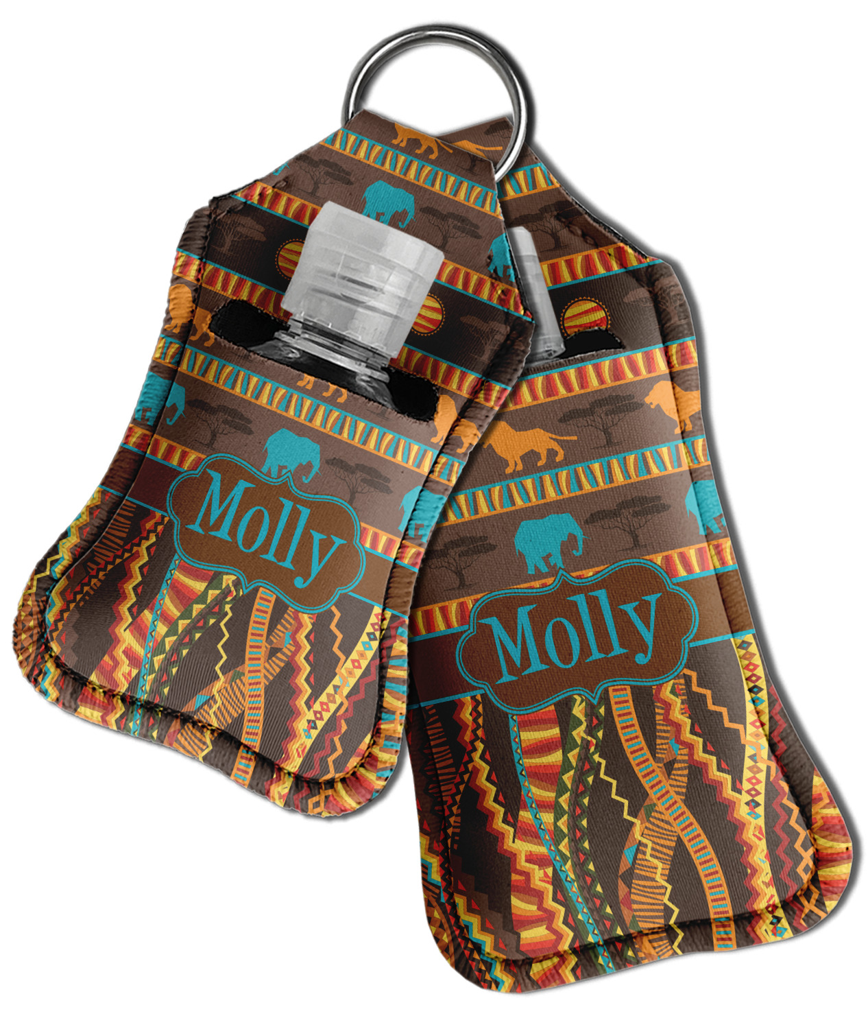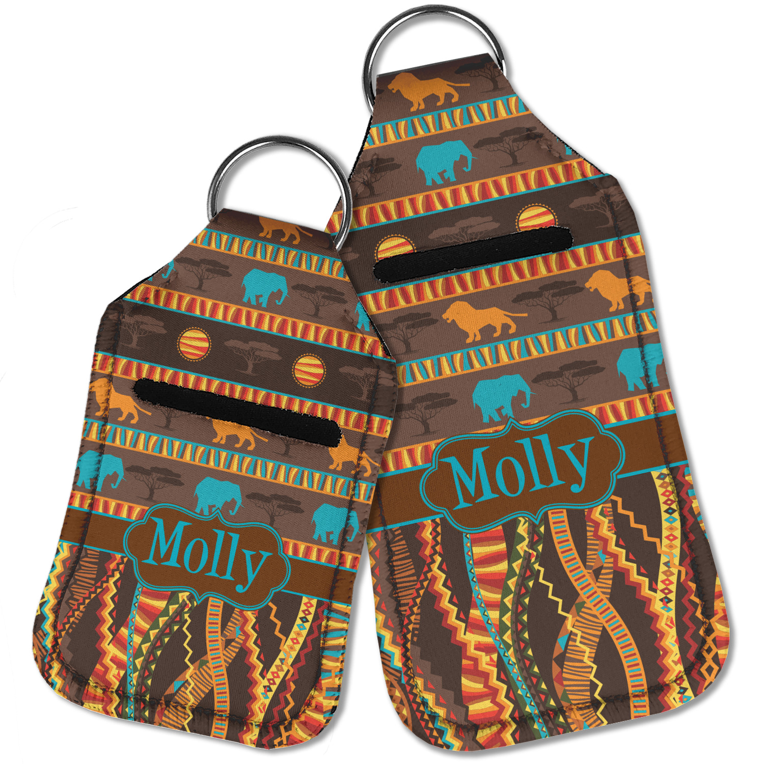 Each hand sanitizer holder comes with its own empty travel-sized, refillable hand sanitizer sure to fit snug in your customized sanitizer case! Our hand sanitizer cases are a durable, yet soft neoprene material sure to last any daily activities or travel agenda. Customize and personalize a hand sanitizer bottle holder with one of our two sizes - small (4.25" x 2.25") or large (5.5" x 2.5"). Each travel sanitizer holder comes with a keyring for attachment on bags, keys, or more!