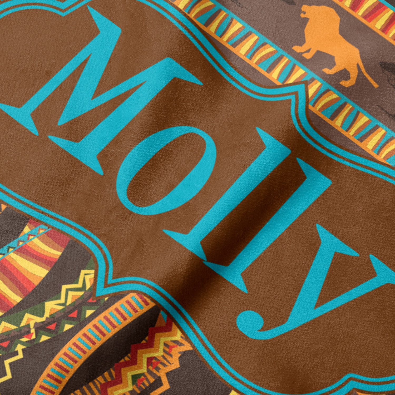 Traditional meets trendy in this fun, tribal design. The African Lions & Elephants design depicts the kings of the African Safari in gorgeous warm colors and teal highlights.