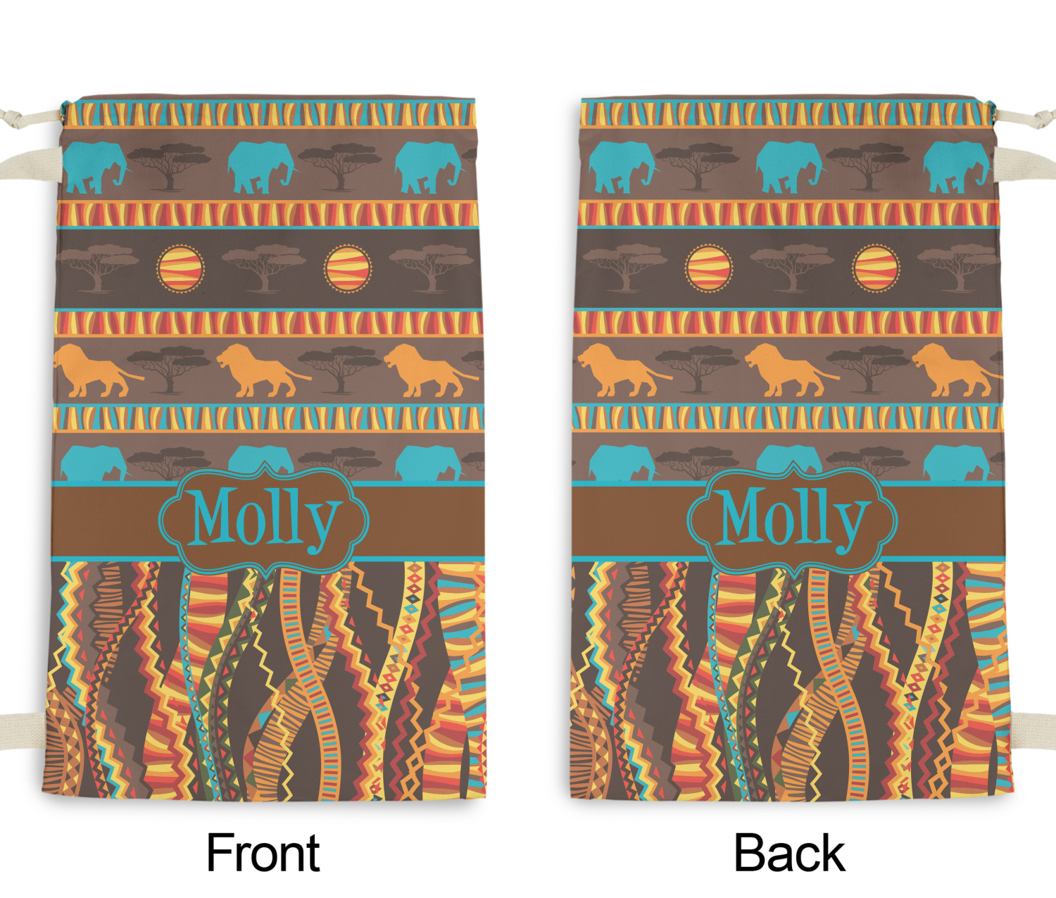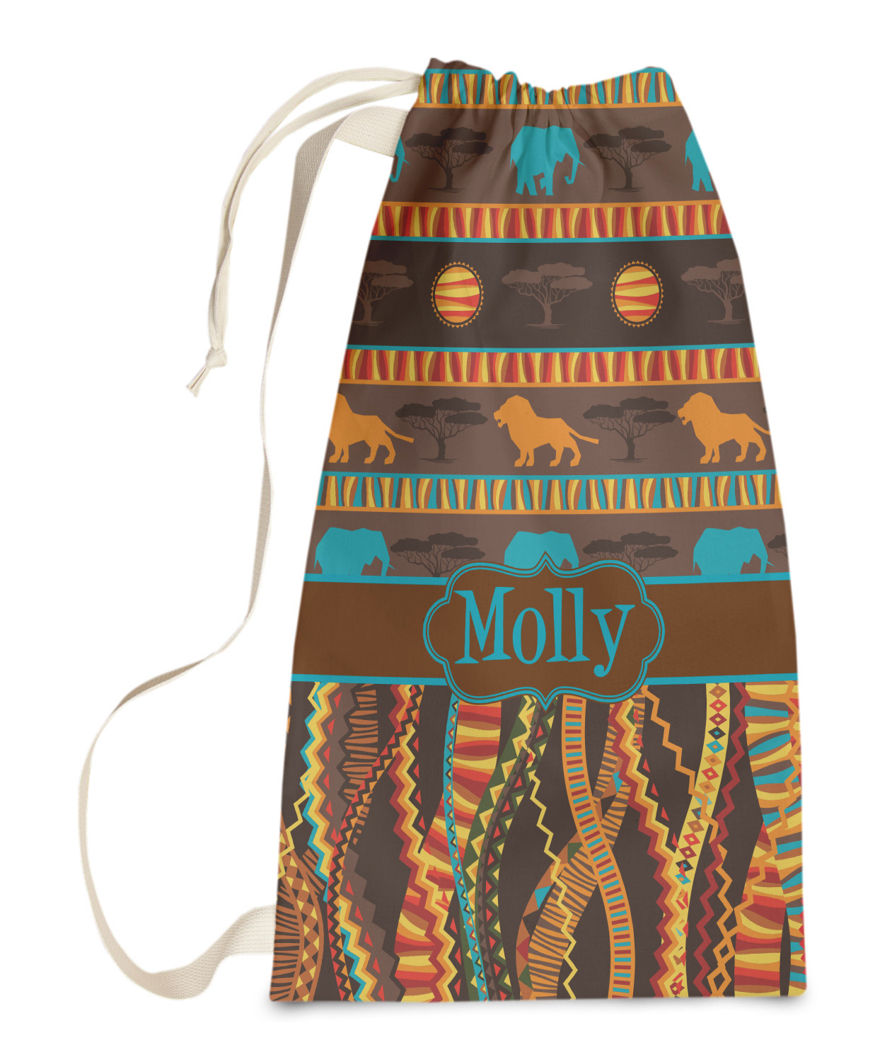 Traditional meets trendy in this fun, tribal design. The African Lions & Elephants design depicts the kings of the African Safari in gorgeous warm colors and teal highlights.