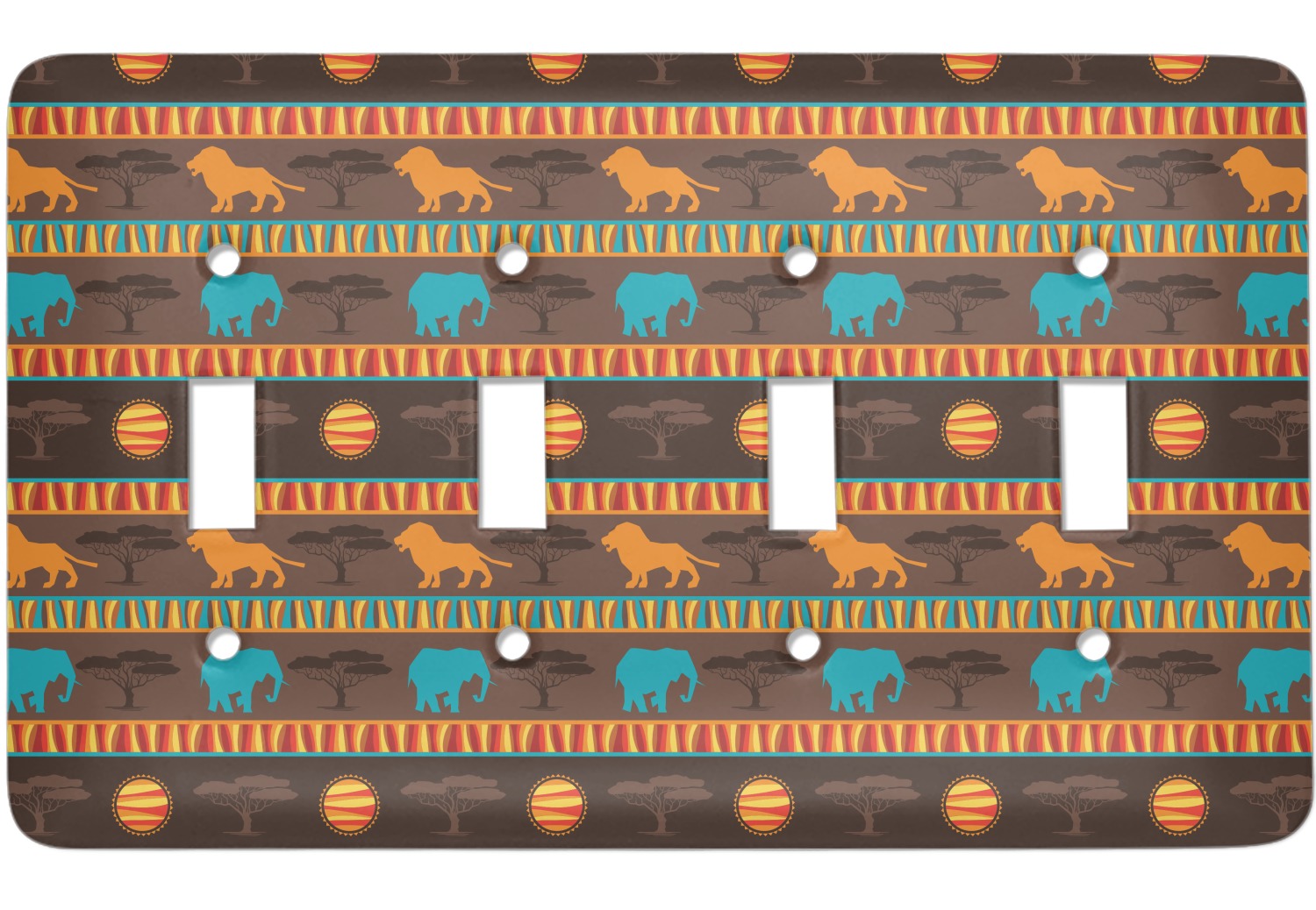 Traditional meets trendy in this fun, tribal design. The African Lions & Elephants design depicts the kings of the African Safari in gorgeous warm colors and teal highlights.
