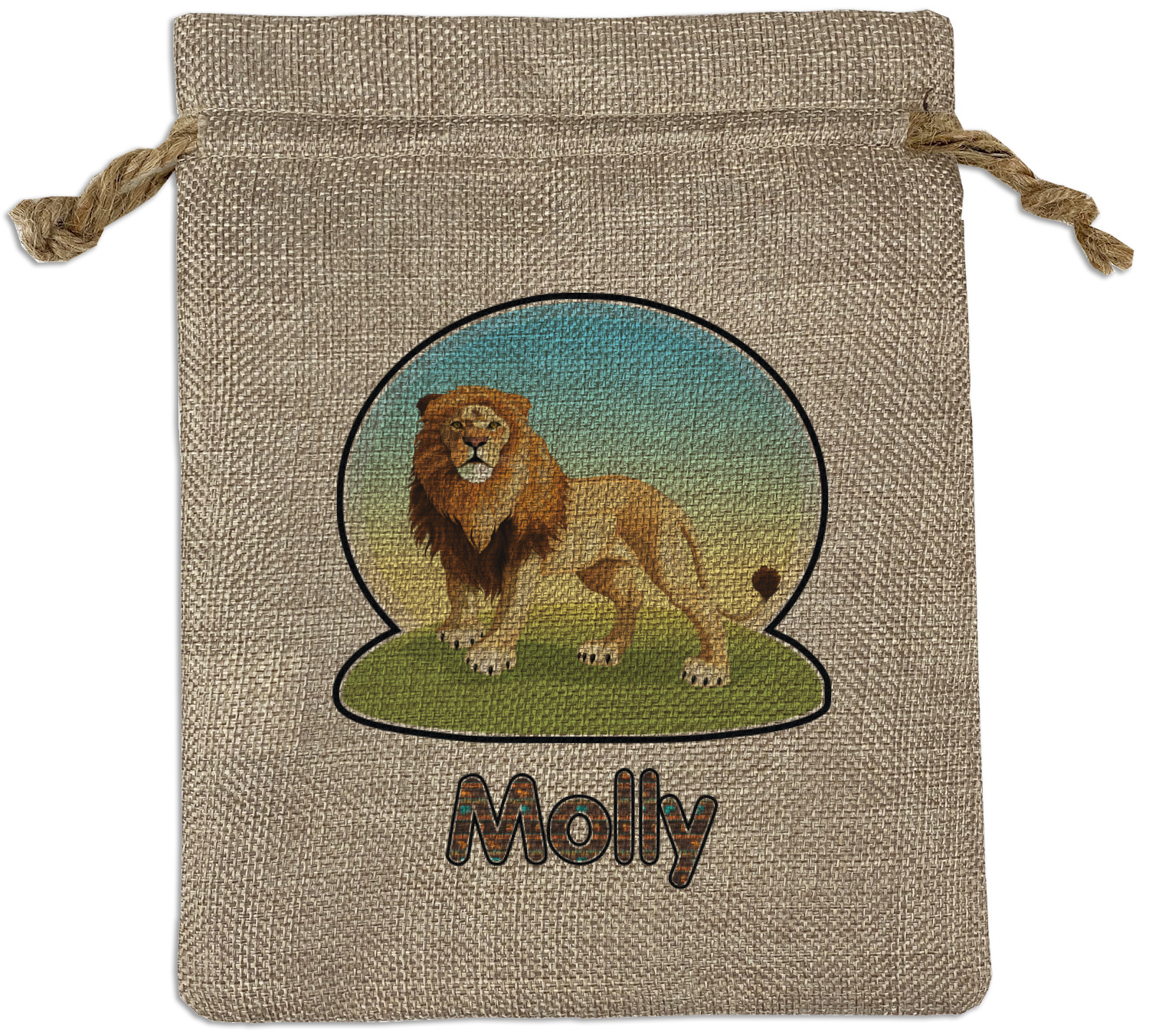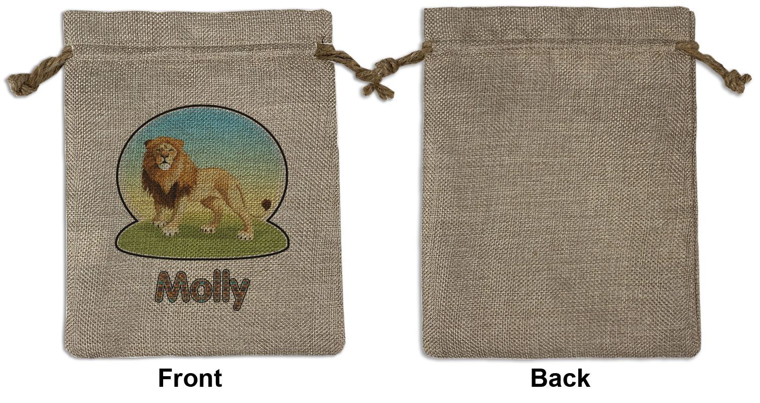We sell our Burlap Gift Bags in 3 variant sized bags. Made with burlap polyester, each personalized bag can be secured with a twine drawstring pull. Your custom design is available to print on one side or both sides - completely up to you! The sizes of the bags measure approximately 4.5" x 6.5" for the smallest size, 6.5" x 8.0" for the medium size, and 6.5" x 13.5" for the large-sized bag.
