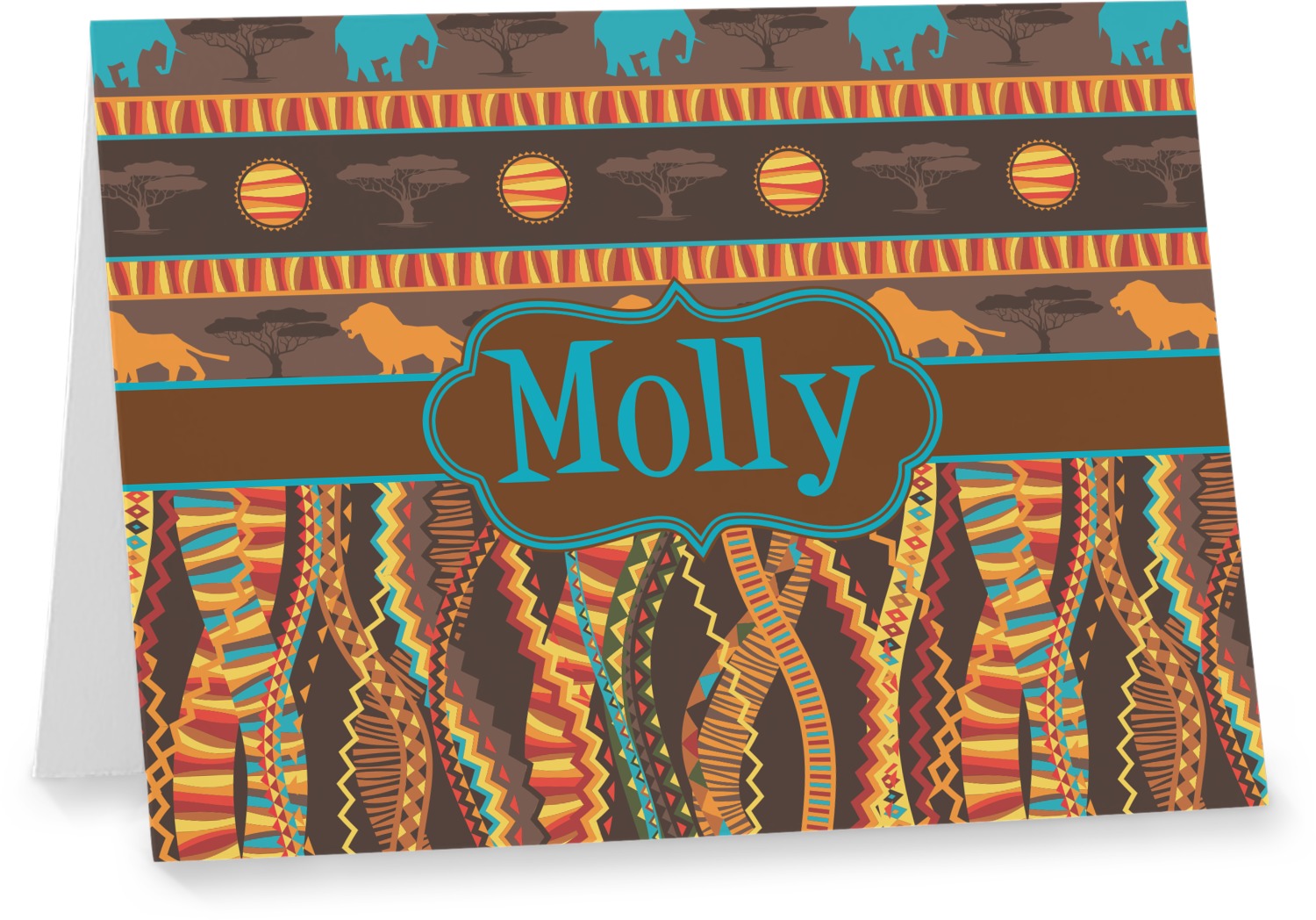 Our custom folded note cards are printed on premium 100lb. card stock and comes with white envelopes. The note card measure 5.5 by 4.25 inches and are blank on the inside for your handwritten message.