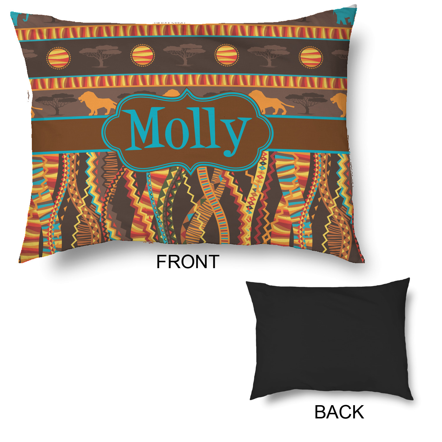 Traditional meets trendy in this fun, tribal design. The African Lions & Elephants design depicts the kings of the African Safari in gorgeous warm colors and teal highlights.