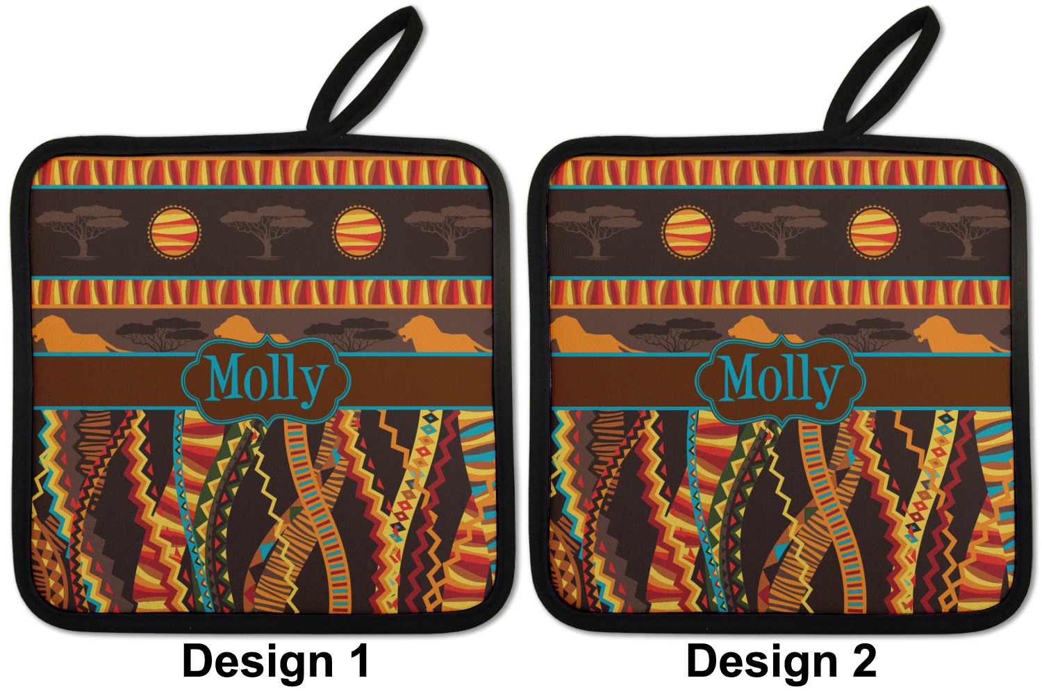Traditional meets trendy in this fun, tribal design. The African Lions & Elephants design depicts the kings of the African Safari in gorgeous warm colors and teal highlights.