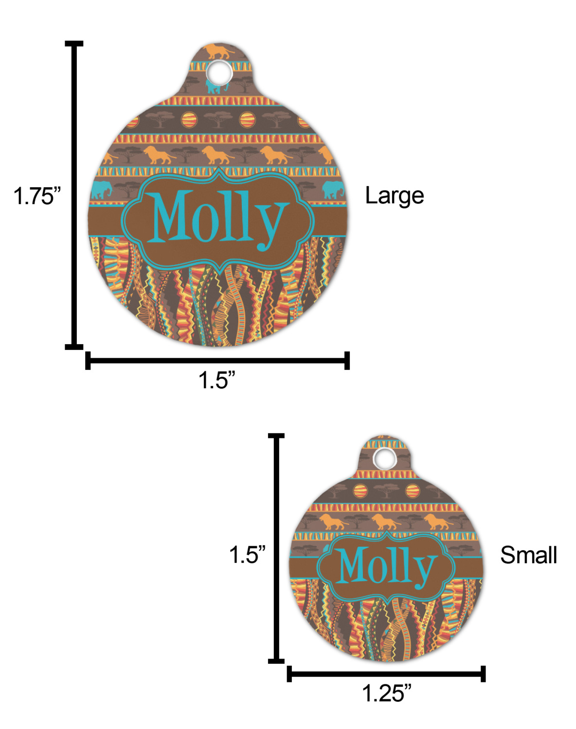 The sturdy, rounded, aluminum tags are available in 2 sizes.