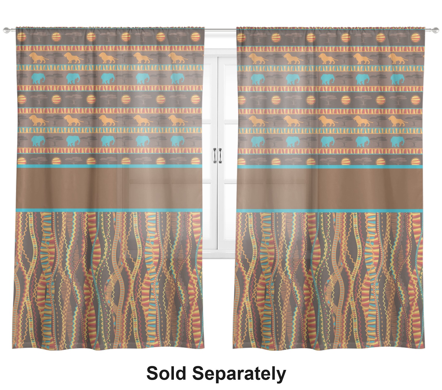 Traditional meets trendy in this fun, tribal design. The African Lions & Elephants design depicts the kings of the African Safari in gorgeous warm colors and teal highlights.