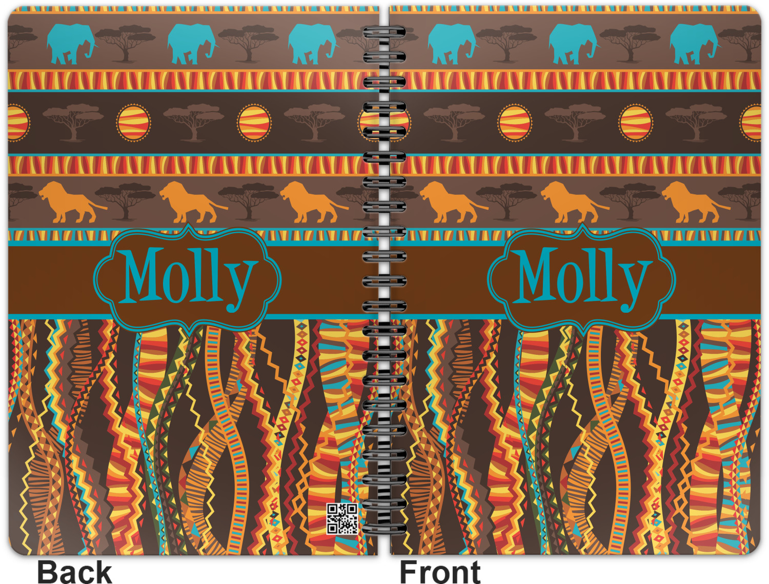 This spiral notebook includes 75 sheets of thick, ruled paper. The front and back of this custom notebook is made of a robust, laminate, plastic covering. We print your personalization on these two panels, underneath a glossy finish, which emphasizes the colors of your design. The two panels and the sheets of paper are held together by a sturdy, black coil. The paper within your bound notebook is perforated for easy, clean tearing.