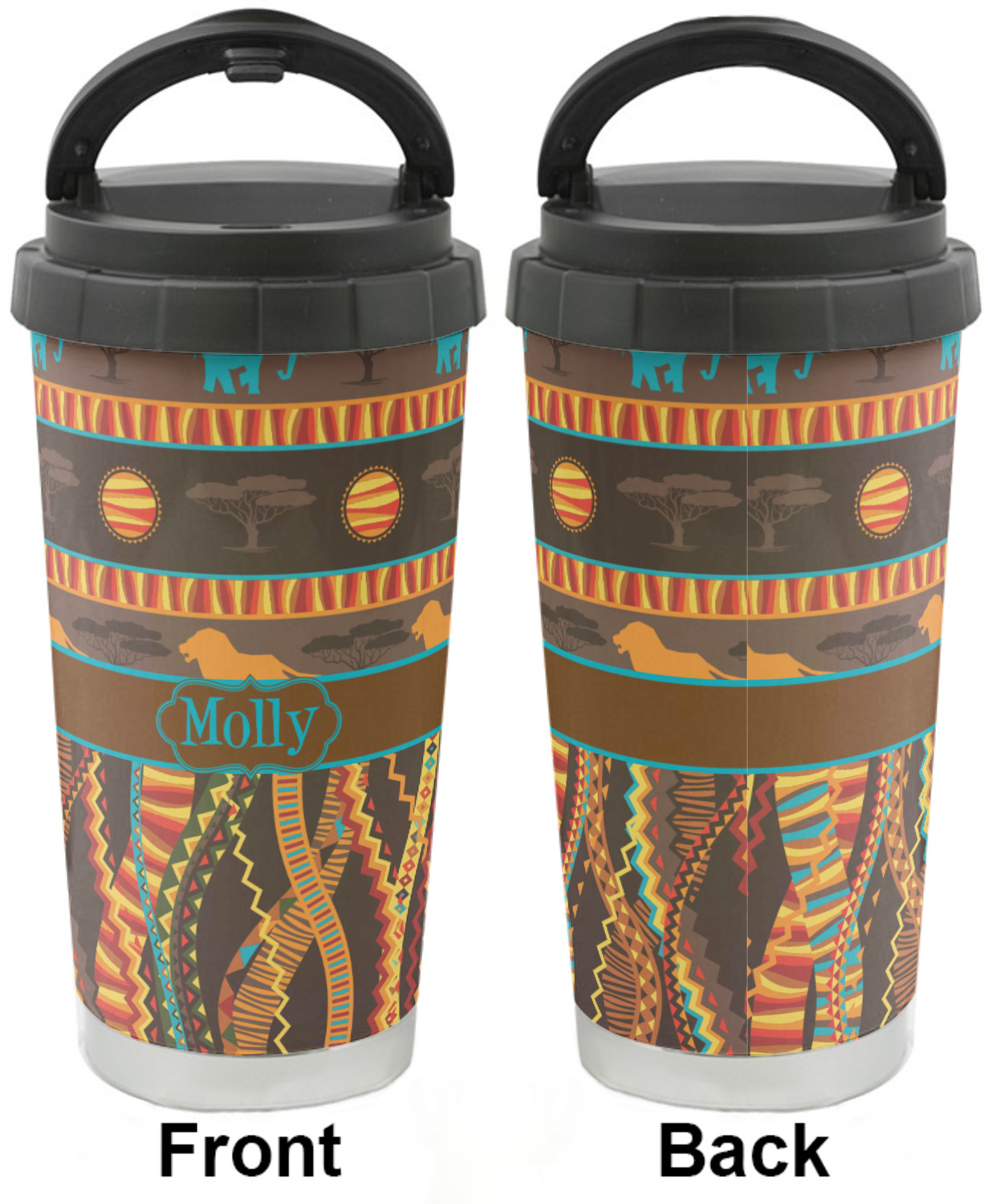 This sleek and tapered 16 oz stainless steel travel cup is a perfect fit in the hand. With the strip of visible stainless steel on the bottom, you'll be feeling classy!