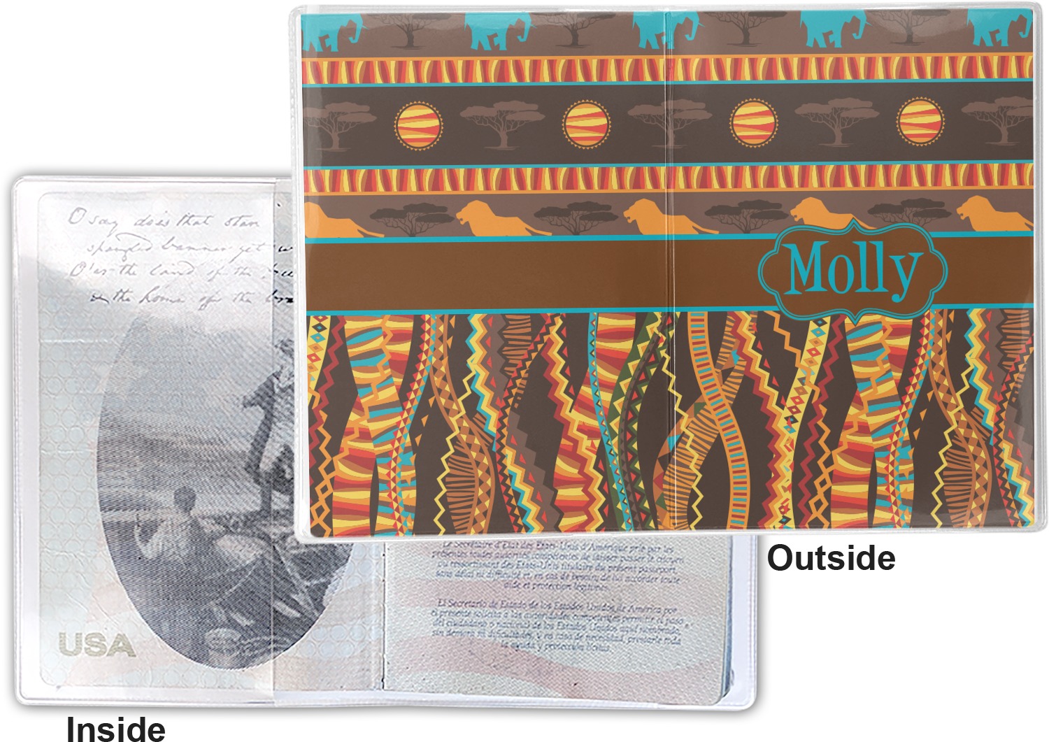 This cover is made of a sturdy clear vinyl with a personalized vinyl insert inside. There is a large and a small pocket on either side to hold the covers of your passport easily and firmly. The passport holder is approximately 7.5" x 5.25", the perfect size to snugly fit your passport. This slim cover is the perfect way to protect your passport without being one more bulky item you have to carry.