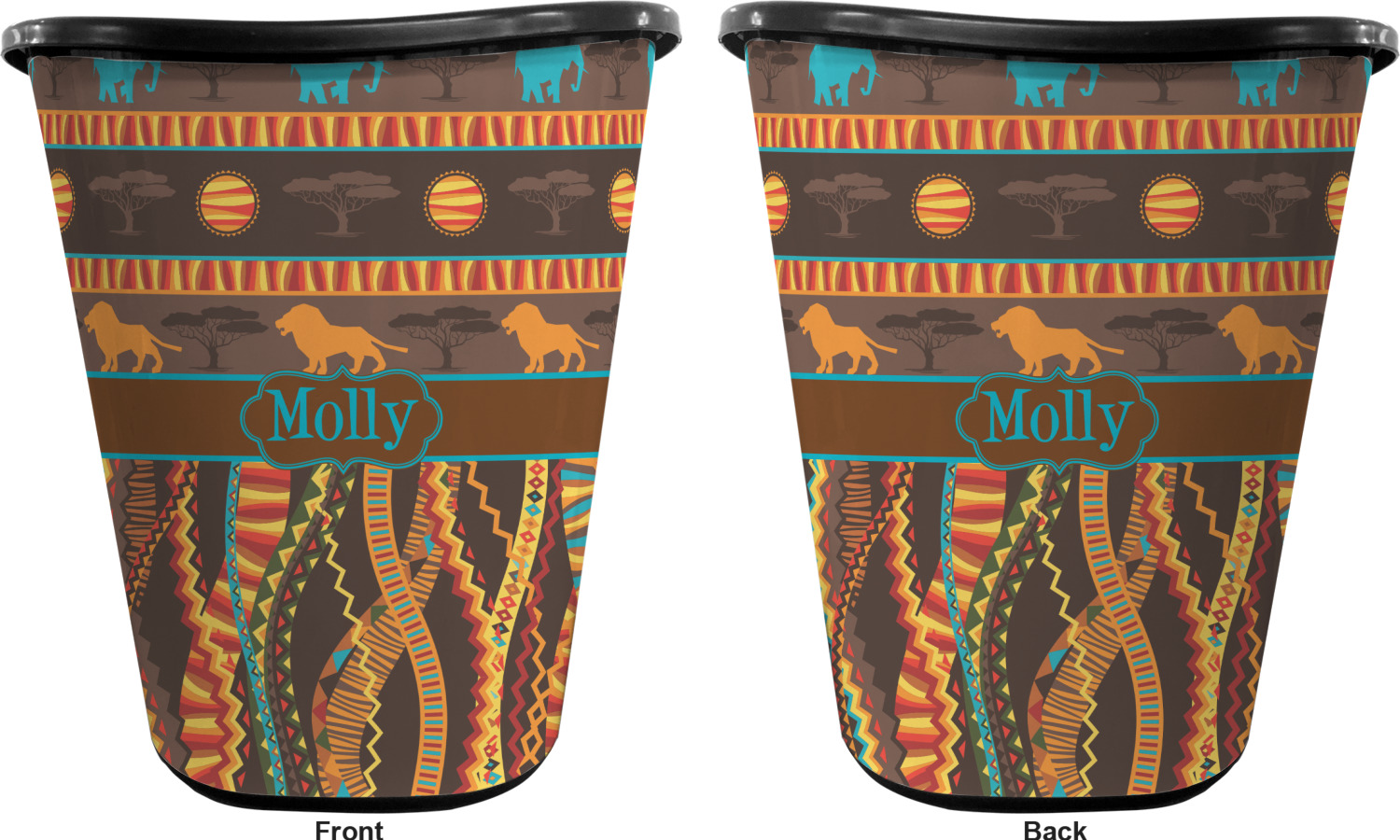 You can choose to purchase these decorative wastebaskets in either a white or a black color that will show on the base and the upper rim. Your customization is printed on a high-gloss, fine-quality vinyl adhesive, and you can choose to either have this adhesive applied to one side only or to both sides. As such, this plastic wastebasket can be single-sided or double-sided, depending on your creative vision. Your customization is printed using durable inks, making the design waterproof and resistant to fading over time.
