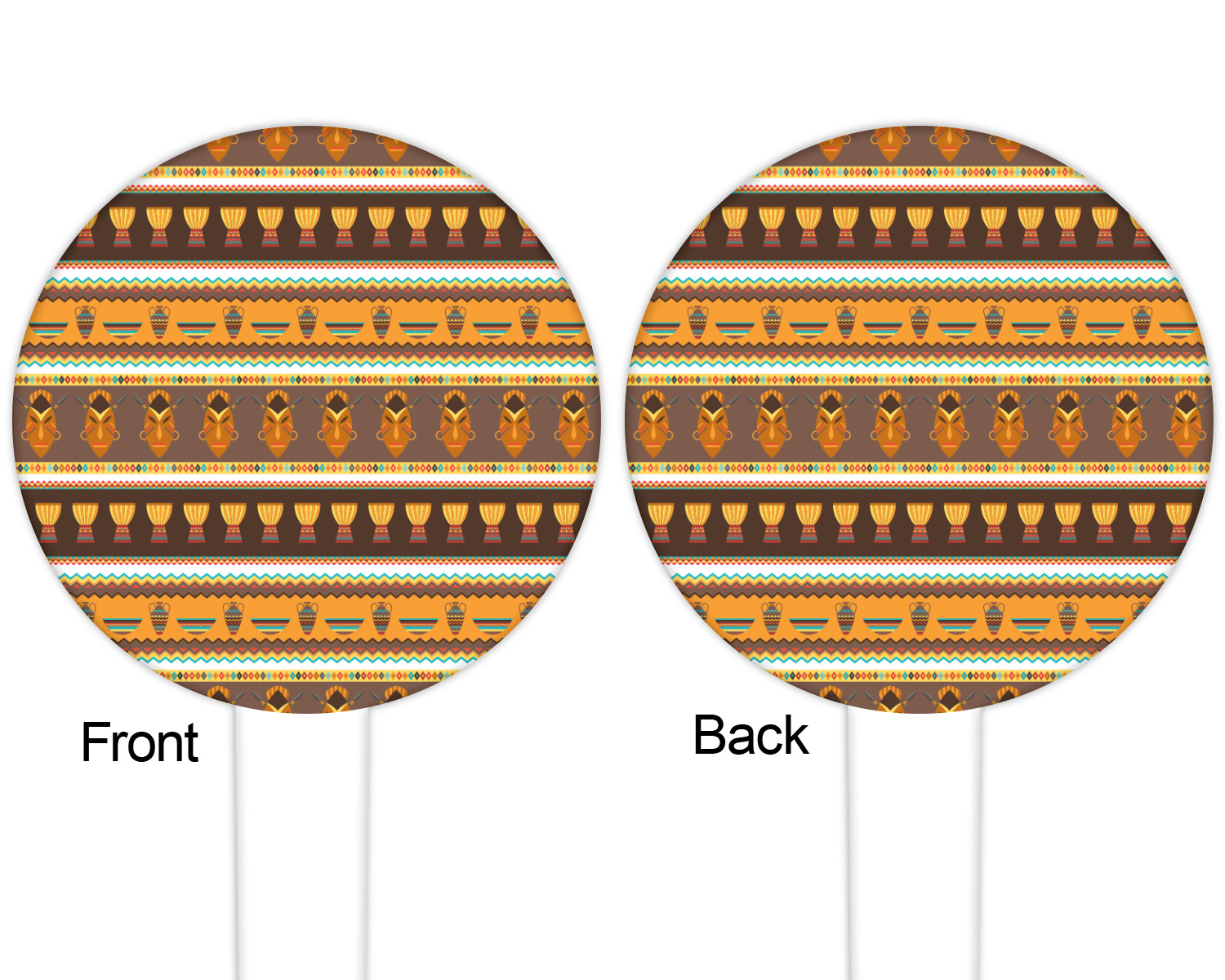 Traditional meets trendy in this fun, tribal design. This African Masks design depicts traditional tribal masks, vases, and bowls all in gorgeous warm colors.