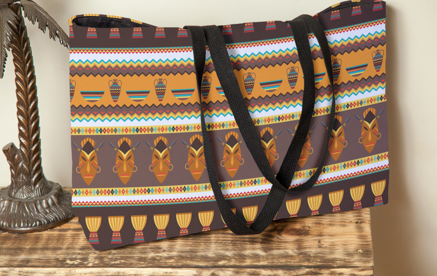 Traditional meets trendy in this fun, tribal design. This African Masks design depicts traditional tribal masks, vases, and bowls all in gorgeous warm colors.