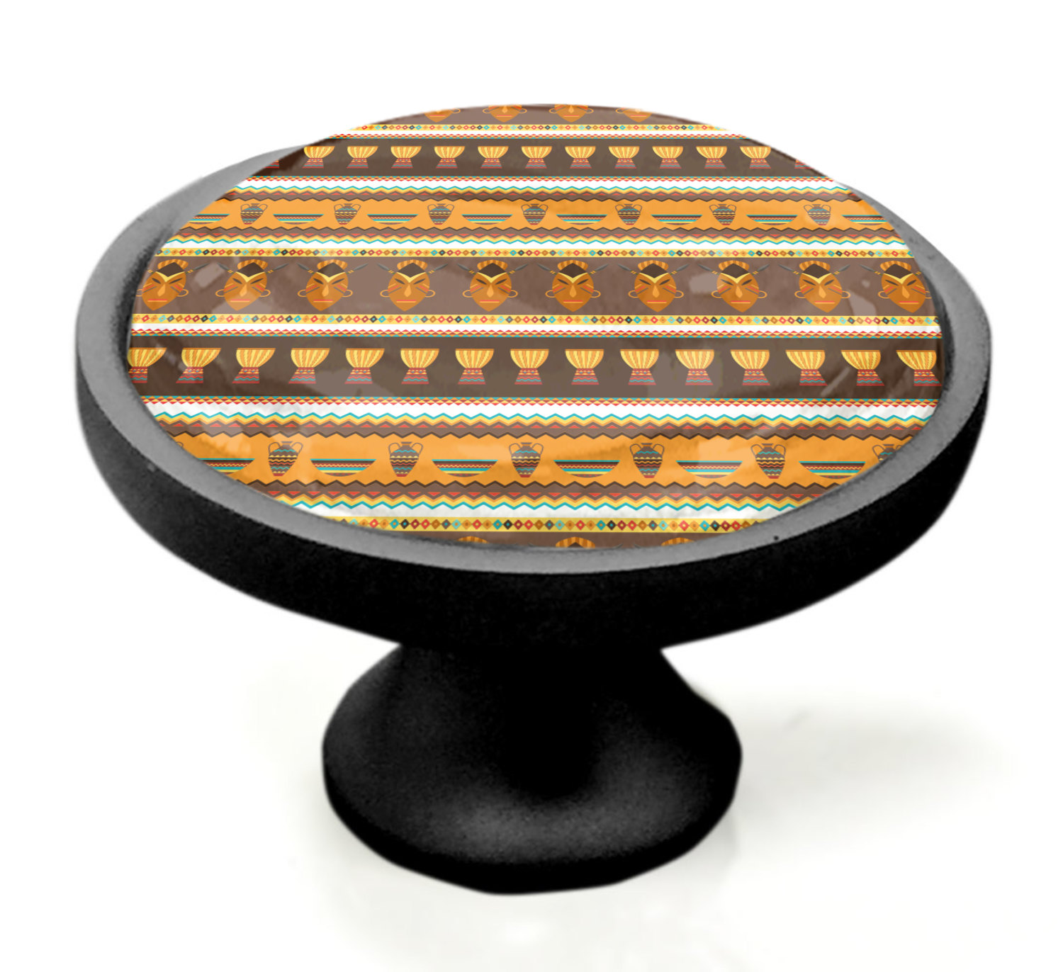 Traditional meets trendy in this fun, tribal design. This African Masks design depicts traditional tribal masks, vases, and bowls all in gorgeous warm colors.