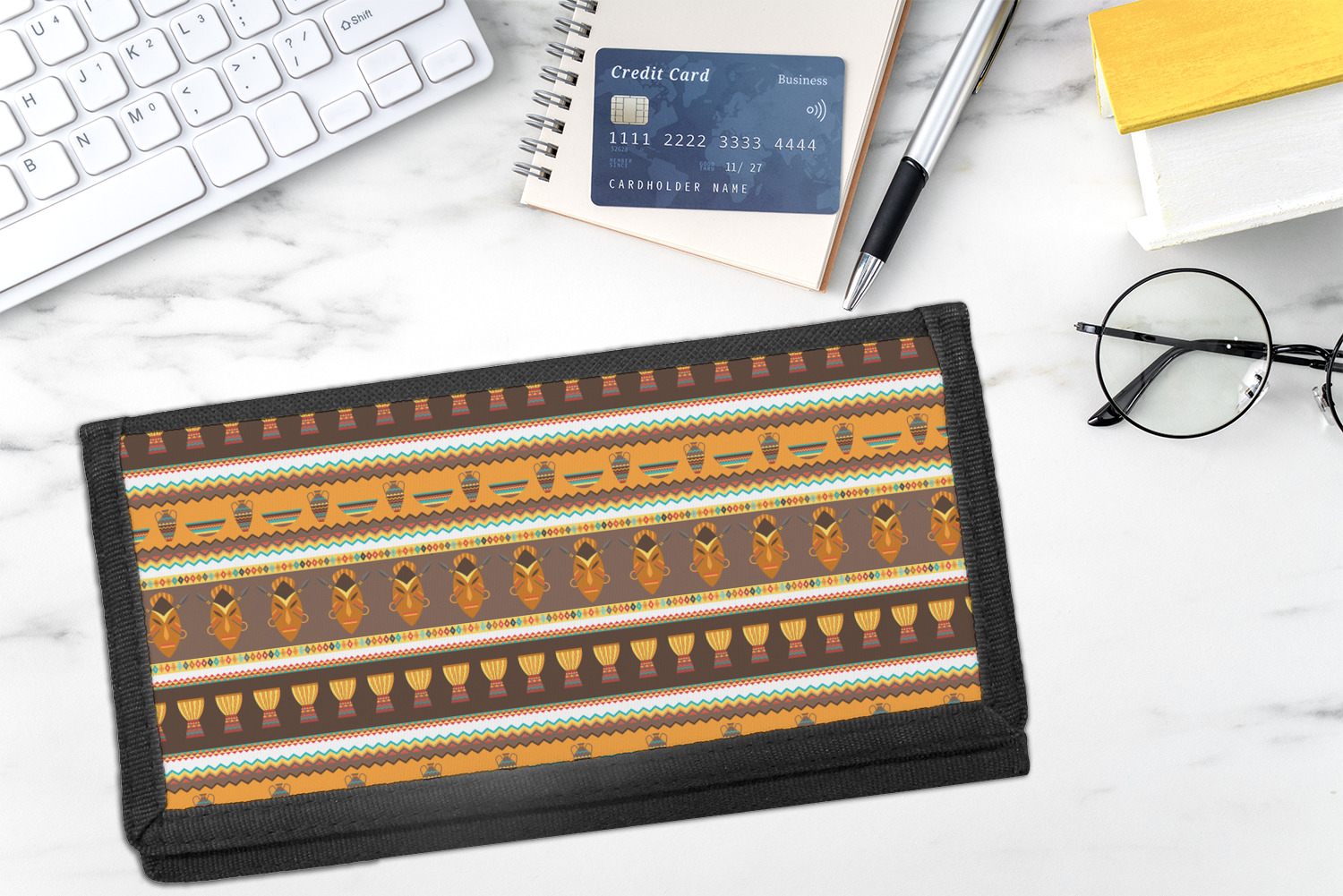 The checkbook cover is made of a durable canvas and the front flap is decorated with a vibrant design of your choosing. With 4 slots for credit cards or IDs, and 2 compartments for your checkbook register, cash, receipts, business cards, and more; this checkbook cover could easily double as a wallet.