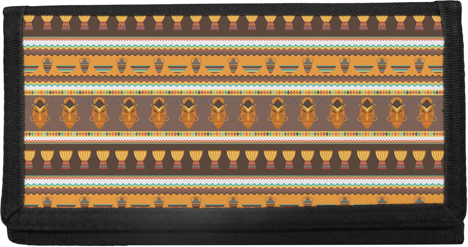 Traditional meets trendy in this fun, tribal design. This African Masks design depicts traditional tribal masks, vases, and bowls all in gorgeous warm colors.