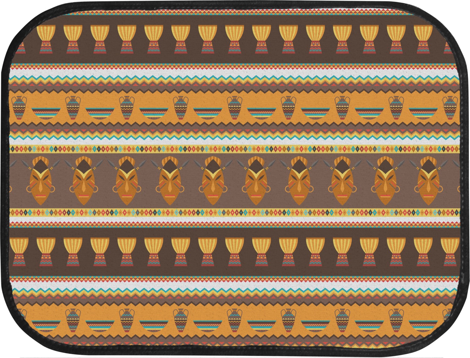 Traditional meets trendy in this fun, tribal design. This African Masks design depicts traditional tribal masks, vases, and bowls all in gorgeous warm colors.
